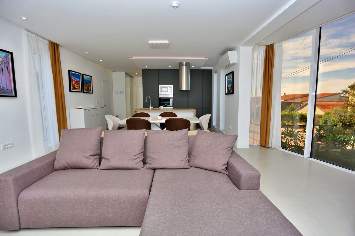 Situé près du village , des plages, des commerces et restaurants ,30 km de l'aéroport de Zadar, 110 de Split prés des sites naturels , moderne et fonctionnel, terrasse privé, parking ,wifi, climatisé, au calme dans la verdure .Accueil chaleureux et personnalisé