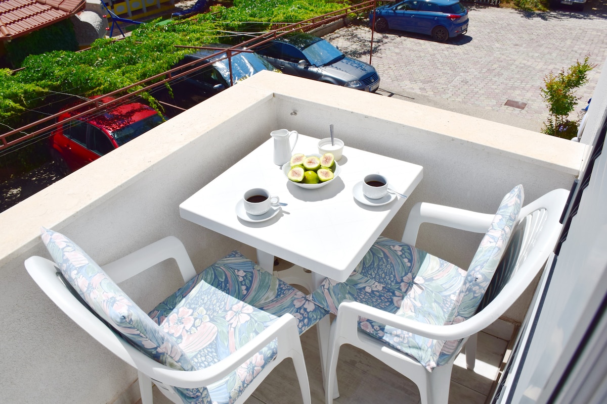 La chambre d'hôtes avec salle de bain privée et balcon est située au 1er étage d'une maison familiale. Il y a 2 lits(2x2m et 1x2m) dans la chambre. Les voyageurs sont autorisés à utiliser la cuisine partagée, qui est équipée d'une cuisinière, d'une bouilloire, d'une cafetière à filtre, d'un four à micro-ondes, d'un réfrigérateur 4 et d'une table à manger. Dans le logement, il y a également une terrasse extérieure semi-ouverte pour 20 personnes où le petit-déjeuner est servi au coût de 5 euros par personne. - 600 m de la plage (7 min à pied, 3 min en voiture) À -180 m du dépanneur
