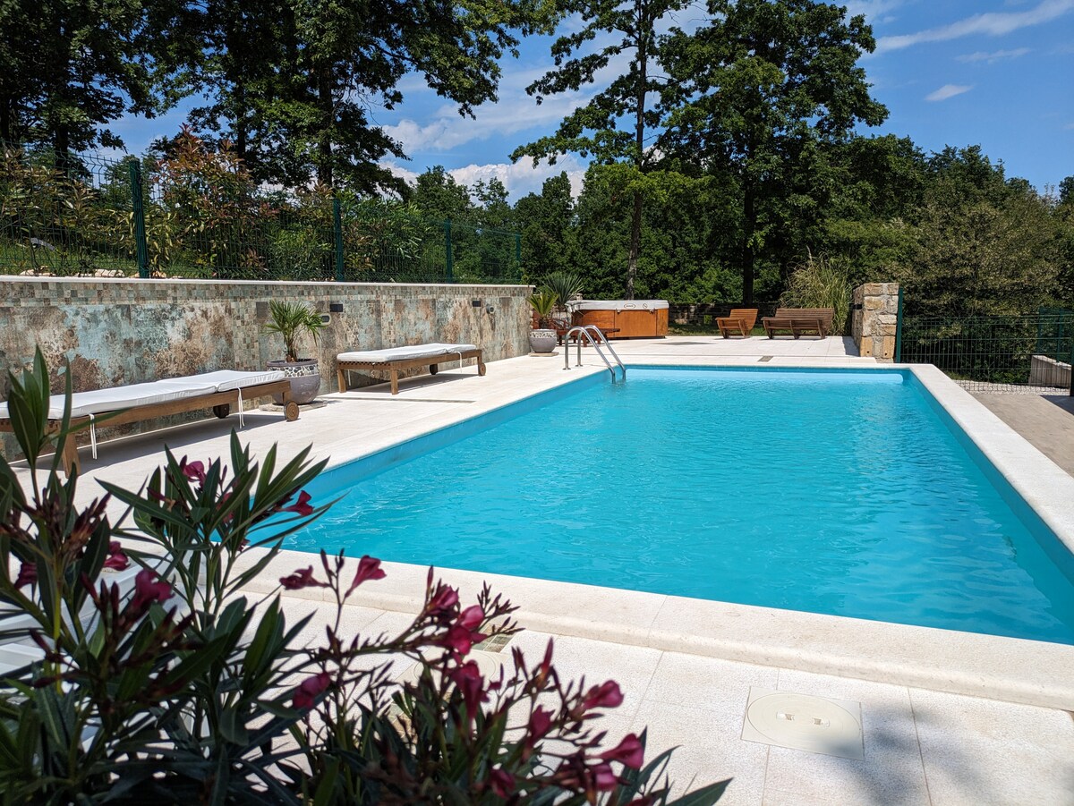 Located in the heart of Istria, Villa Cami is a beautiful retreat surrounded by nature. Its charming architecture blends harmoniously with the lush landscape, offering the perfect escape. The villa features four modern bedrooms, each with its own bathroom. The interior is equipped with modern amenities, while the private pool and well-kept garden create an ideal setting for relaxation. With stunning views, Villa Cami invites guests to immerse themselves in the beauty of the Istrian countryside.