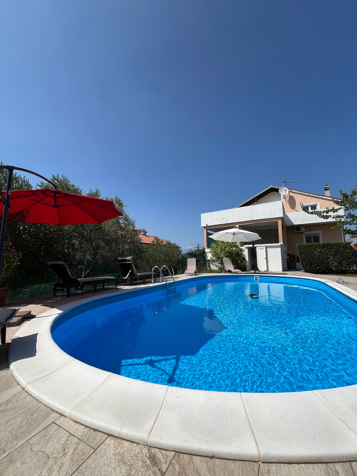 Maison entière avec piscine, située à Poljica, près des belles villes de Zadar et Nin. Trois chambres et deux salles de bains. Paisible et calme, loin de la circulation et du bruit de la ville. Variété de plages à proximité (sable, galets, cachées), toutes accessibles en 7 à 20 minutes en voiture. Les parcs nationaux avec toute leur beauté sont à seulement une heure. Ou vous pouvez simplement vous reposer au bord de la piscine.