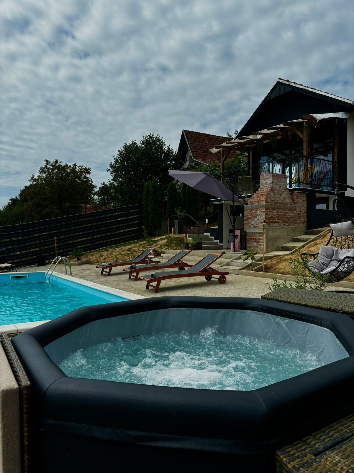 Maison de luxe 5* récemment rénovée. Nous voulions créer un endroit où les gens puissent se déconnecter du stress quotidien, respirer pleinement et ressentir à nouveau la joie de vivre dans ses moments les plus simples mais les plus importants. Situé sur les pentes douces de Bilogora, entouré de verdure et de calme. Piscine d'eau salée et jacuzzi avec vue. Détente dans un sauna finlandais.