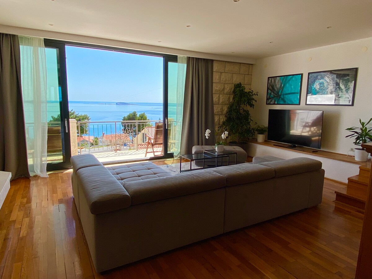 L'appartement offre une vue imprenable sur la mer depuis le balcon privé. Situé dans un quartier résidentiel calme sur la colline verdoyante du village pittoresque de Mlini avec une vue directe sur la mer et les îles. L'appartement se compose d'une chambre avec lit King Size, d'une cuisine séparée et d'une salle de bain privée. Notre appartement est situé au premier étage de la villa qui offre deux autres appartements. Il est possible de réserver plus d'appartements pour les grands groupes.