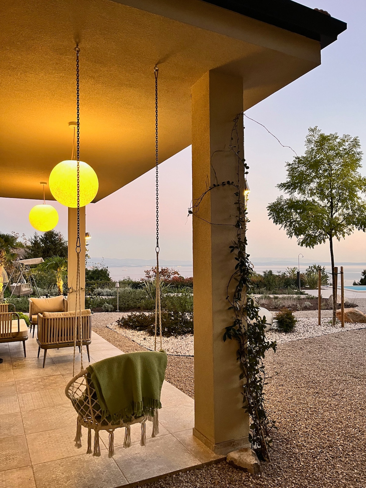 Contemporary Mediterranean villa located in a peaceful private resort overlooking the Kvarner bay, Opatija Riviera and Istrian peninsula. Surrounded by a private lavender field, private infinity pool (8x6m), hot tub and a fire pit area, all with a stunning sea view! Concierge service included. Professional tennis trainer on site. Possibility of organizing private yoga lessons, massage, private chef, salsa lessons...
