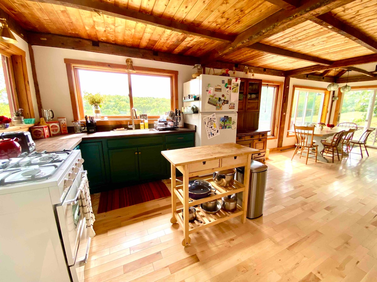 Venez vous détendre dans la sérénité de la campagne tranquille. Cette maison offre une vue magnifique, une grande cheminée en pierre et des vitraux dans toute la maison. Profitez du confort d'un chez-soi avec une cuisine complète, des équipements et des lits avec des draps de 1500 fils au pouce carré tout en explorant les caractéristiques intéressantes de cette maison unique en son genre. Asseyez-vous près de l'étang alimenté par la source surplombant la propriété bordée de pommiers. La maison a un accès direct à de courts sentiers pédestres et est proche des sentiers VAST pour la motoneige.