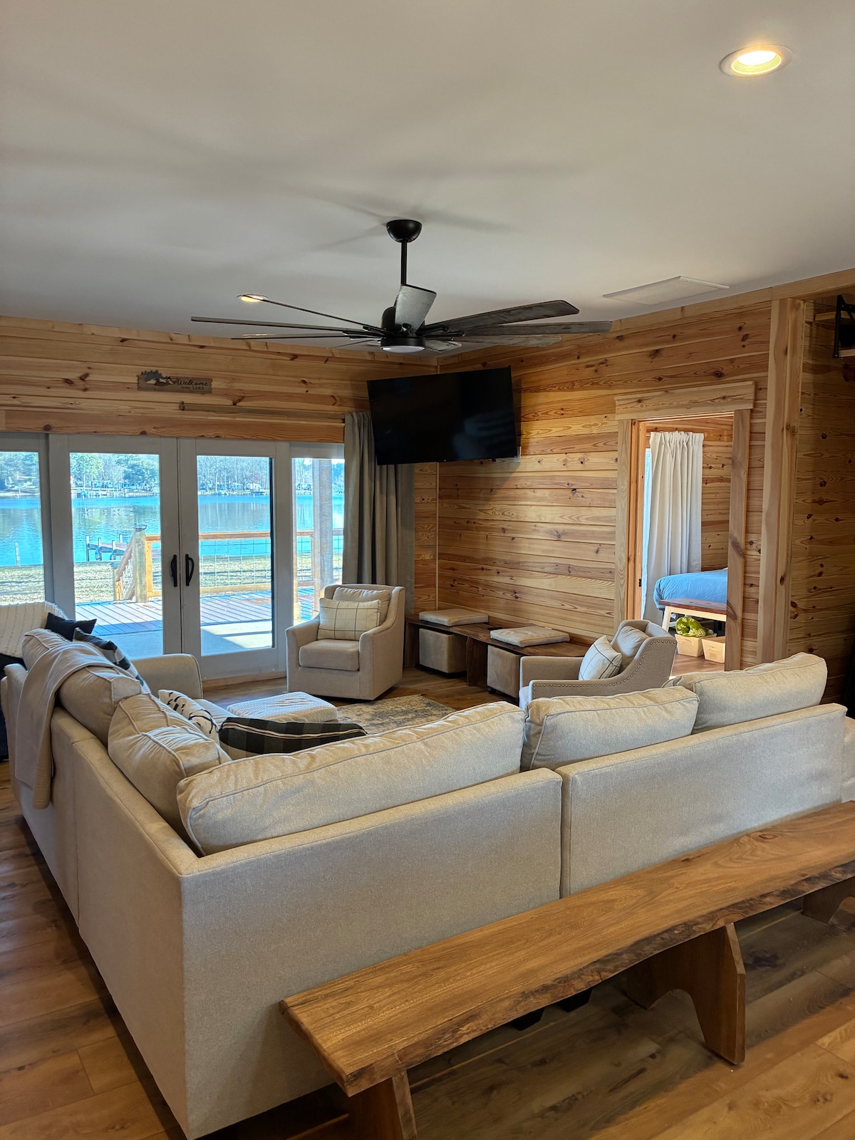 Amenez votre famille ou votre groupe dans ce logement de 3 chambres et 1 salle de bain situé dans les grands arbres avec beaucoup d'espace pour se détendre et s'amuser (… si vous êtes du genre jean et sweat-shirt). Ce n'est pas le Hilton !) Téléviseurs dans chaque chambre et 2 terrasses couvertes. Pêchez, ou asseyez-vous simplement sur le quai, regardez les bateaux passer et appréciez le lac. Nous utilisons rarement le quai nous-mêmes. À 600’ de notre rampe de bateau publique avec un parc et une petite plage. Veuillez également noter que nous avons installé des caméras qui surveillent uniquement l'extérieur.