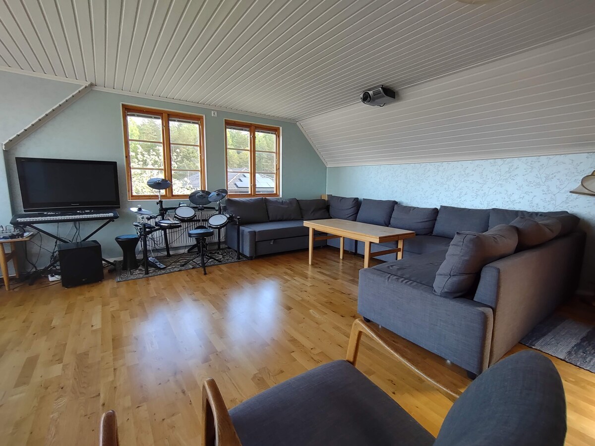 Voici une maison avec beaucoup d'espace qui est répartie sur deux étages + sous-sol. En plus de 4 chambres, il y a une cuisine et un salon et à l'étage supérieur un espace avec télévision. Le patio isolé est inclus et l'accès à un grand jardin. La maison est reliée à la belle réserve naturelle d'Oset qui relie Rynningeviken qui est parfaite pour les longues promenades ou les balades à vélo. La maison est située à environ 4 km du centre d'Örebro et le bus du comté s'arrête à l'extérieur. La zone de baignade la plus proche est Hjälmarbaden à 8 km.