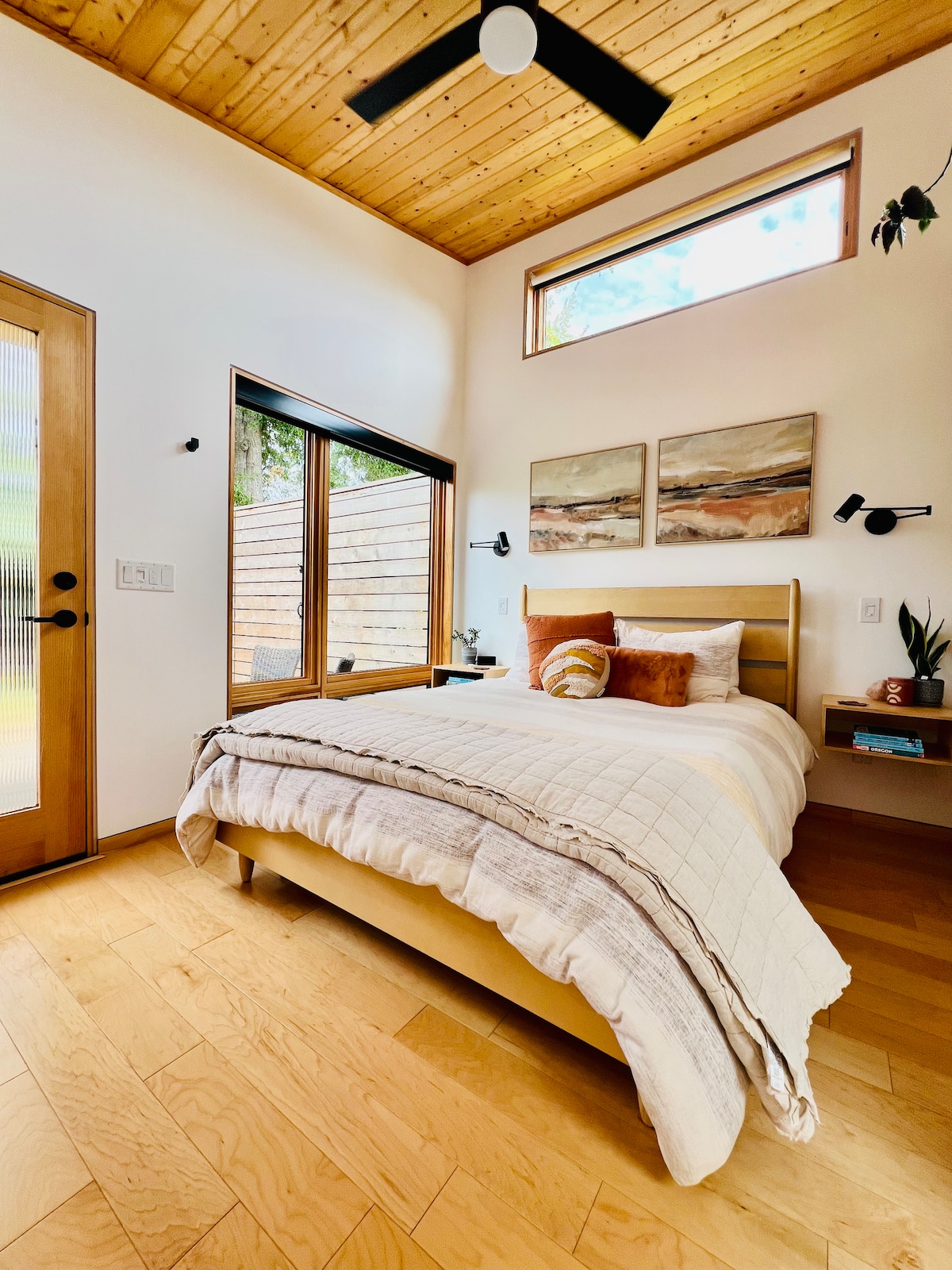 Bienvenue à Juniper House ! Nous avons conçu notre maison d'hôtes dans l'arrière-cour pour qu'elle soit un loft lumineux et confortable, plein de lumière du soleil, de bois apparent, de meubles de bon goût et de finitions colorées. Profitez d'un espace privé de 600 pieds carrés avec un patio extérieur dans un quartier calme et proche de Portland, à quelques pâtés de maisons du train léger et à distance de marche d'une grande variété de grands restaurants et de bars. Parfait pour les couples et les séjours longue durée.