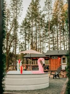 Petit cottage avec alpagas – Triple Nickel Pines🌲 Évadez-vous dans le Pine Tree Tiny Cottage, une escapade romantique et paisible au cœur du sud de l'Oregon. Niché entre Grants Pass et Merlin (à 8 minutes de Merlin et à 15 minutes de Grants Pass). Cette cabane confortable offre le mélange parfait de confort, de nature et d'unicité, juste à côté de notre refuge pour alpagas à but non lucratif. Après avoir exploré la région, observez les étoiles depuis vos baignoires extérieures, plongez dans le jacuzzi ou faites griller des s'mores au coin du feu. ESCAPADE PARFAITE POUR LES COUPLES !