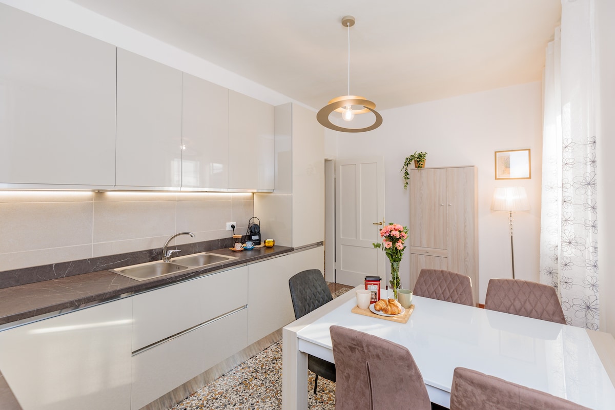 Appartement central nouvellement construit à environ 10 km du centre historique de Venise, pratique à pied de toutes les commodités (supermarché, pharmacie, boulangerie, restaurants et bars). Il dispose d'un parking privé à l'intérieur du jardin, d'un petit espace extérieur, d'une chambre double, d'une salle de bain avec douche, d'une buanderie équipée, d'une cuisine, d'un salon, d'une connexion Wi-Fi gratuite, de la climatisation et du chauffage. L’accueil pour nous est une passion, nous sommes sûrs que vous vous sentirez chez vous.