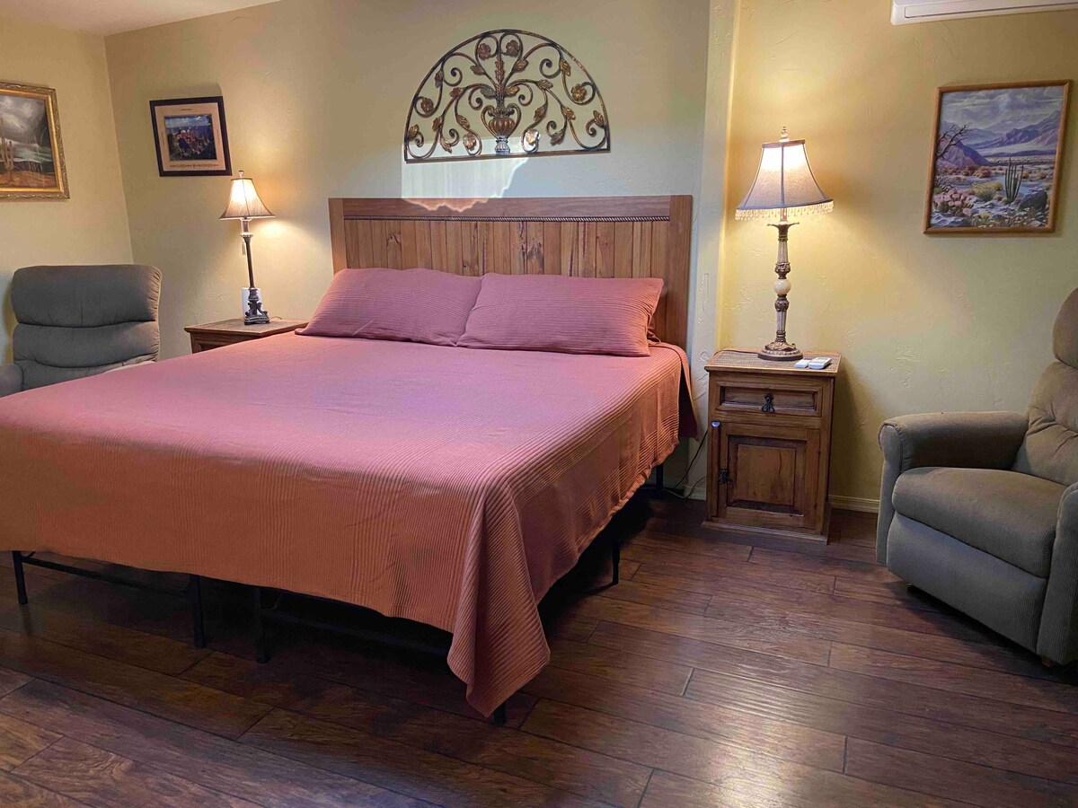Maison d'hôtes récemment rénovée située dans un quartier central calme des contreforts de Catalina. Sentiers pédestres et cyclables dans notre jardin, à 10-15 min en voiture des randonnées/parcs, du centre-ville et de l'UofA ! Loin de tout et pourtant idéalement proche de tout ! Profitez d'une belle vue sur la montagne et d'un aménagement paysager professionnel. Cuisine bien équipée avec lave-linge/sèche-linge et une cheminée confortable et un bureau dans la chambre principale. Beaucoup d'intimité par rapport à la maison principale. Équipé de tous les équipements nécessaires pour un séjour chaleureux et confortable.