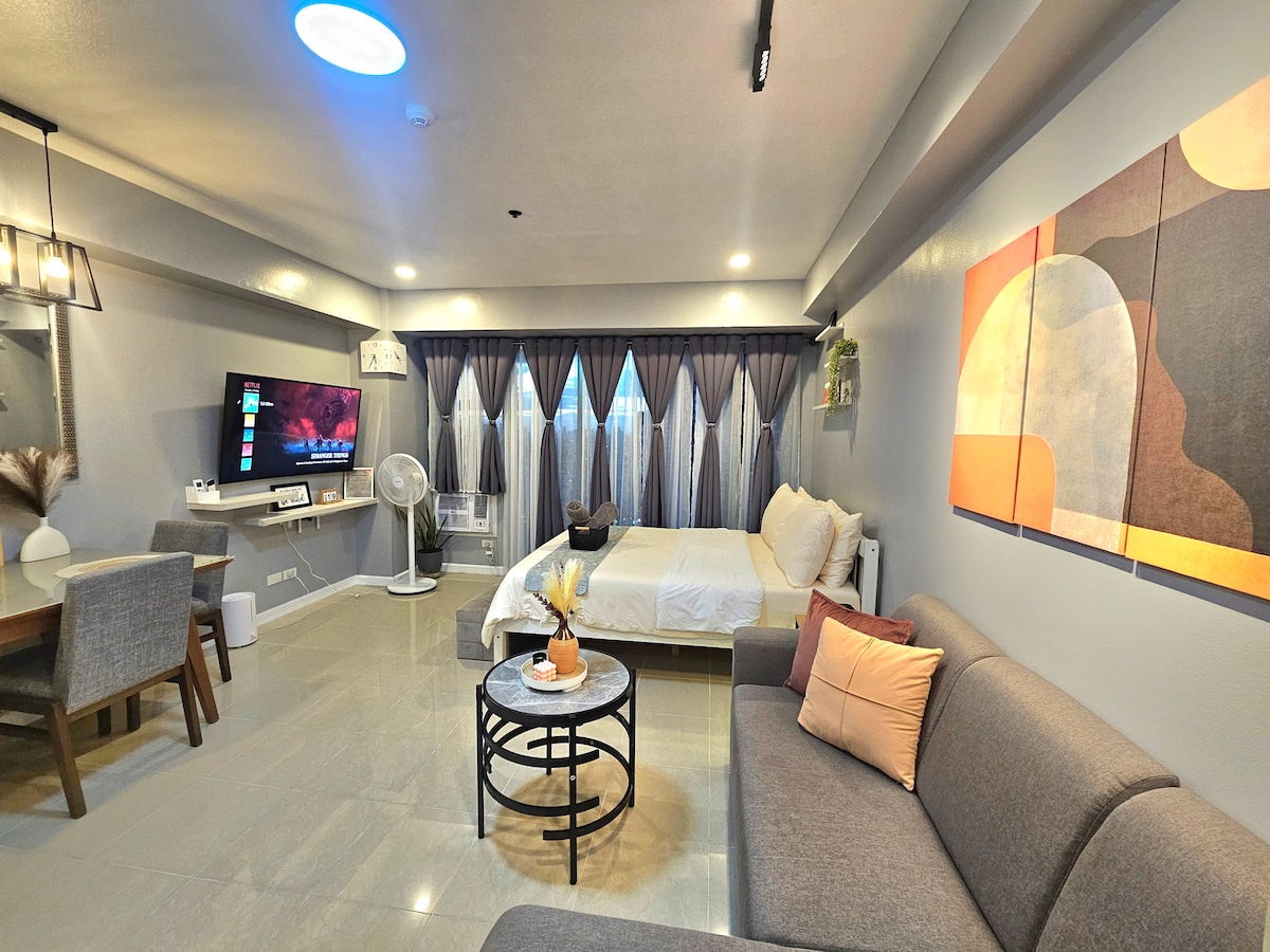 MABUHAY ! Que vous soyez en voyage d'affaires, en visite chez votre famille ou en voyage en Asie, ne cherchez pas plus loin. Ce qui était autrefois un appartement d'une chambre a été converti en un grand studio spacieux (quarante-huit m² !). Situé dans l'un des plus hauts bâtiments résidentiels des Philippines, il peut être votre maison loin de chez vous. Si vos dates sélectionnées sont réservées, vous pouvez également consulter nos autres studios gérés sous mon profil !