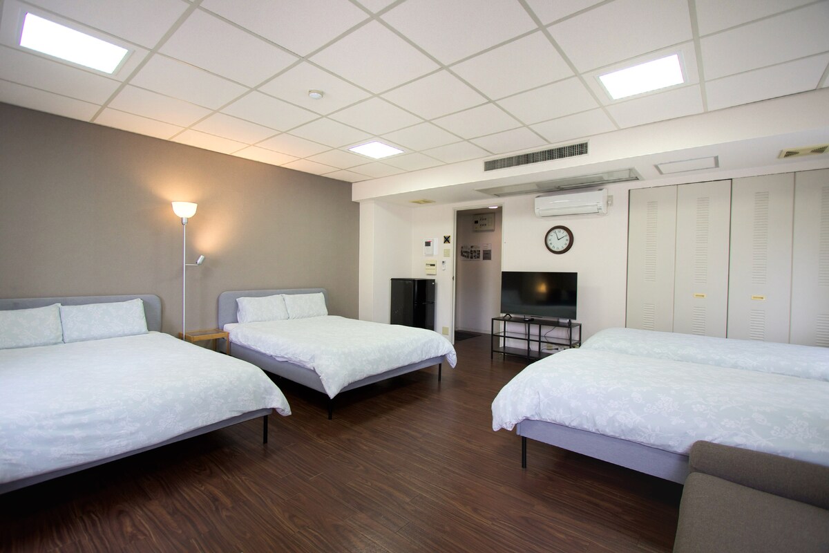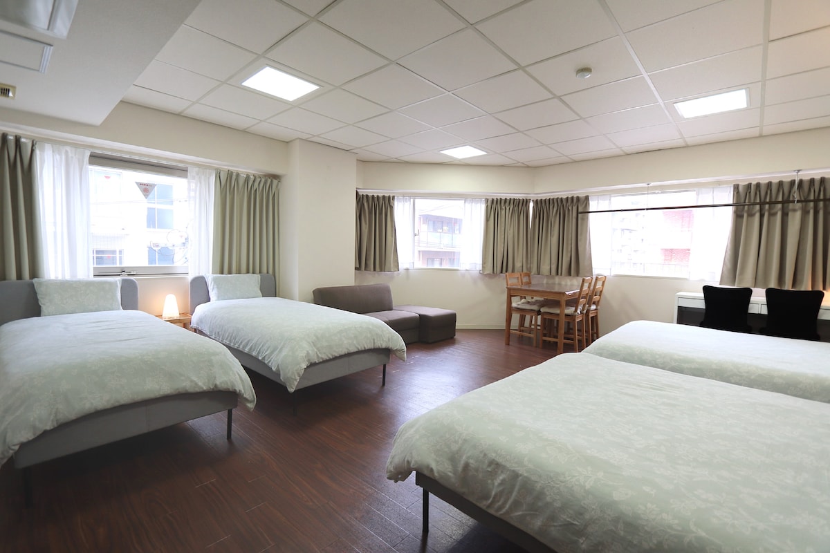 ◆Quartier populaire, calme et sûr ! Chambre propre et confortable avec 2 lits doubles et 2 canapés-lits. Profitez d'une promenade relaxante dans le quartier avec de nombreux cafés et boutiques spécialisés. À seulement 7 minutes à pied de Shinsaibashi et 3 minutes à pied d’un supermarché/pharmacie/commerce ouvert 24h/24. Accès facile : 5 minutes à pied de la rue Sakaisuji Honmachi et 6 min à pied de la rue Nagahoribashi, avec des escalators pour un transport pratique même avec des bagages lourds.