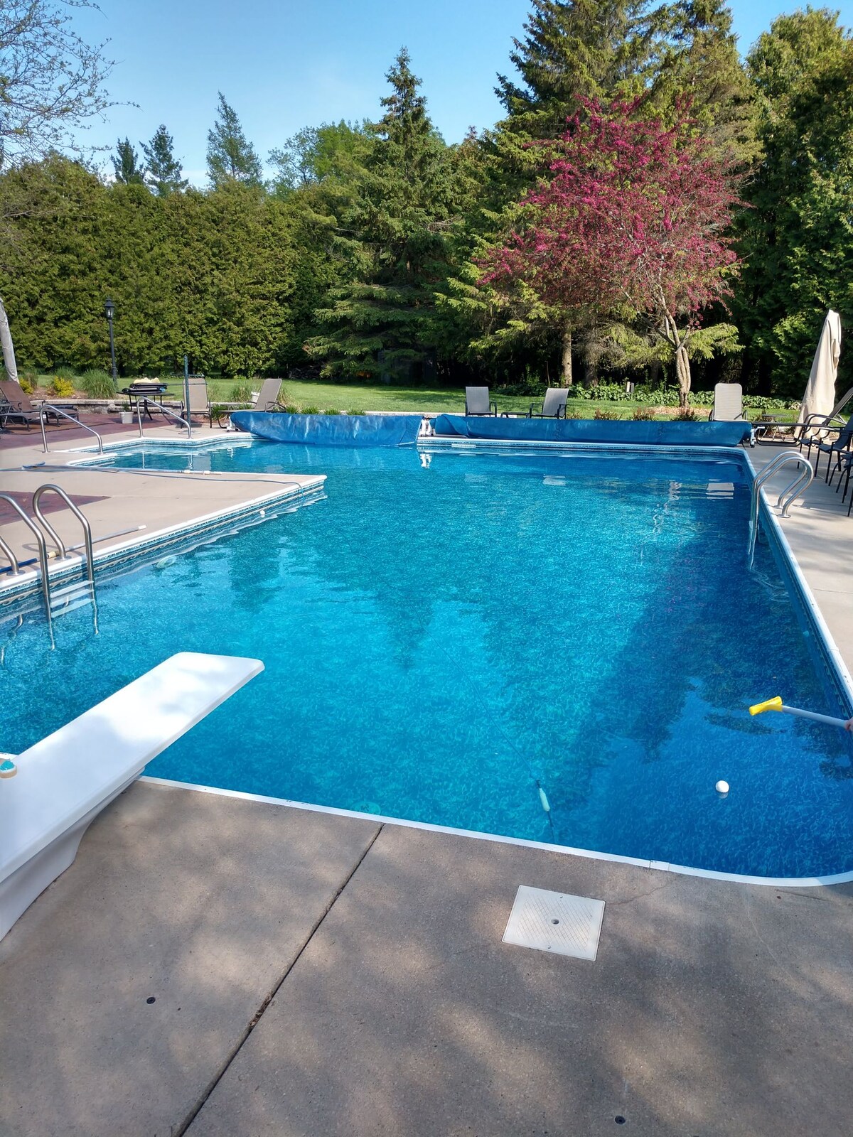 Luxury 4BR/3BA villa on 25 acres near Road America and Elkhart Lake. Sleeps 8–10. Features chef’s kitchen, indoor fireplace, outdoor fire pit, trails, and orchard. High-speed WiFi, EV charger, and family-friendly amenities. 10 min to Road America, 5 min to Elkhart Lake, 25 min to Whistling Straits and Kohler Spa. Private, peaceful, and ideal for groups, families, and race fans. Fast internet 1GBps