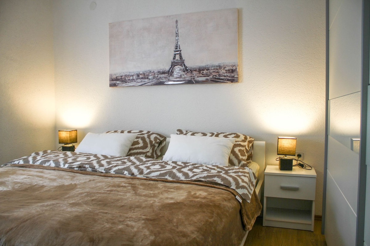 Petit appartement chic et confortable de 45 m2 dans le centre d'Osijek, avec une belle vue sur la rivière Drava, à proximité de toutes les attractions historiques, musées, cinémas, théâtres, galeries, pubs, restaurants, boutiques et transports. L'appartement est au 5e étage (pas d'ascenseur), équipé pour se sentir comme à la maison, à côté de l'hôtel Osijek. Il est parfait pour les couples, les aventuriers en solo, les voyageurs d'affaires et les familles (avec enfants). Je vous souhaite de merveilleux moments et souvenirs.
