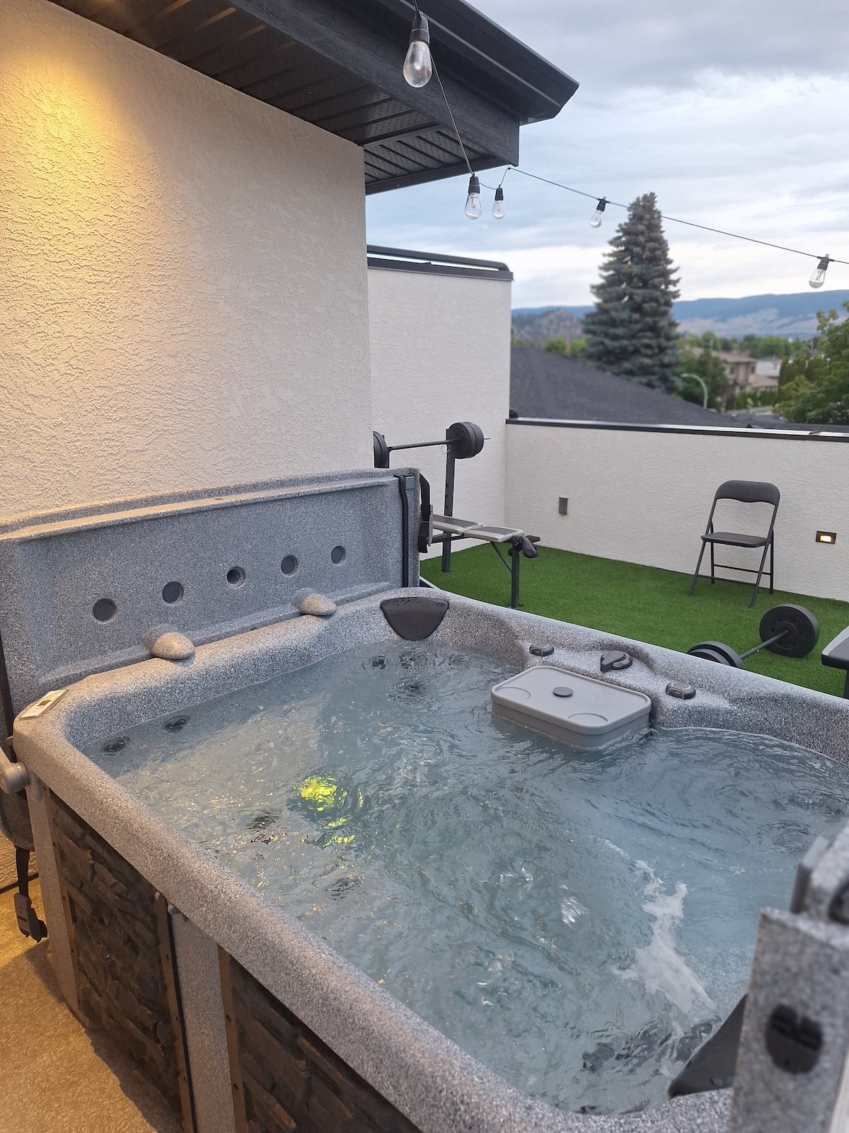 Escapade chic à West Kelowna : jacuzzi et vue sur l'eau