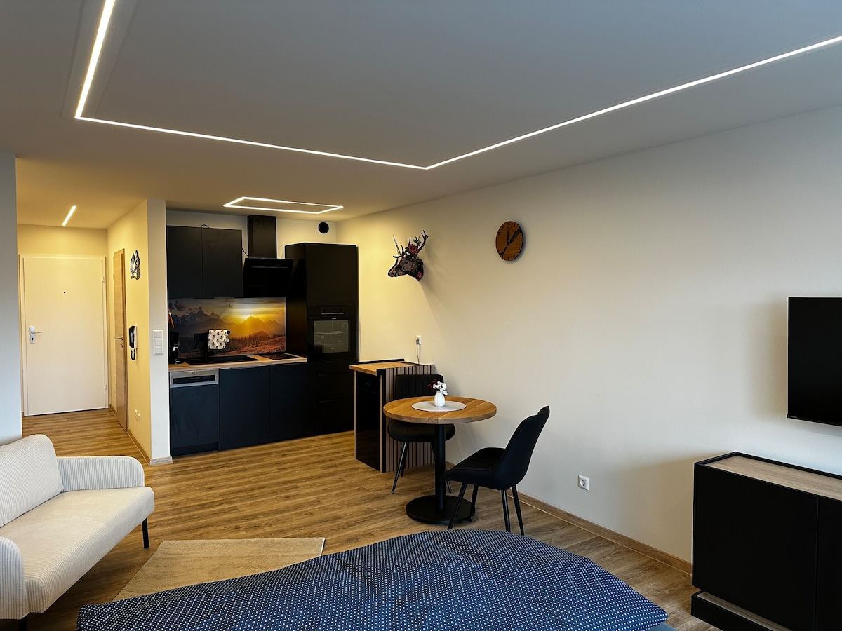 Mon logement est d'environ 33 m² plus balcon, il est situé à proximité du centre-ville et des transports en commun. Vous allez adorer mon logement : confort bavarois, un lit confortable (140 x 200), une cuisine bien équipée, la cheminée, un balcon spacieux et couvert, le calme, bien sûr les montagnes et les lacs... Mon appartement décoré avec goût est toute l'année un refuge romantique pour les couples, les voyageurs en solo, les aventuriers et les voyageurs d'affaires.