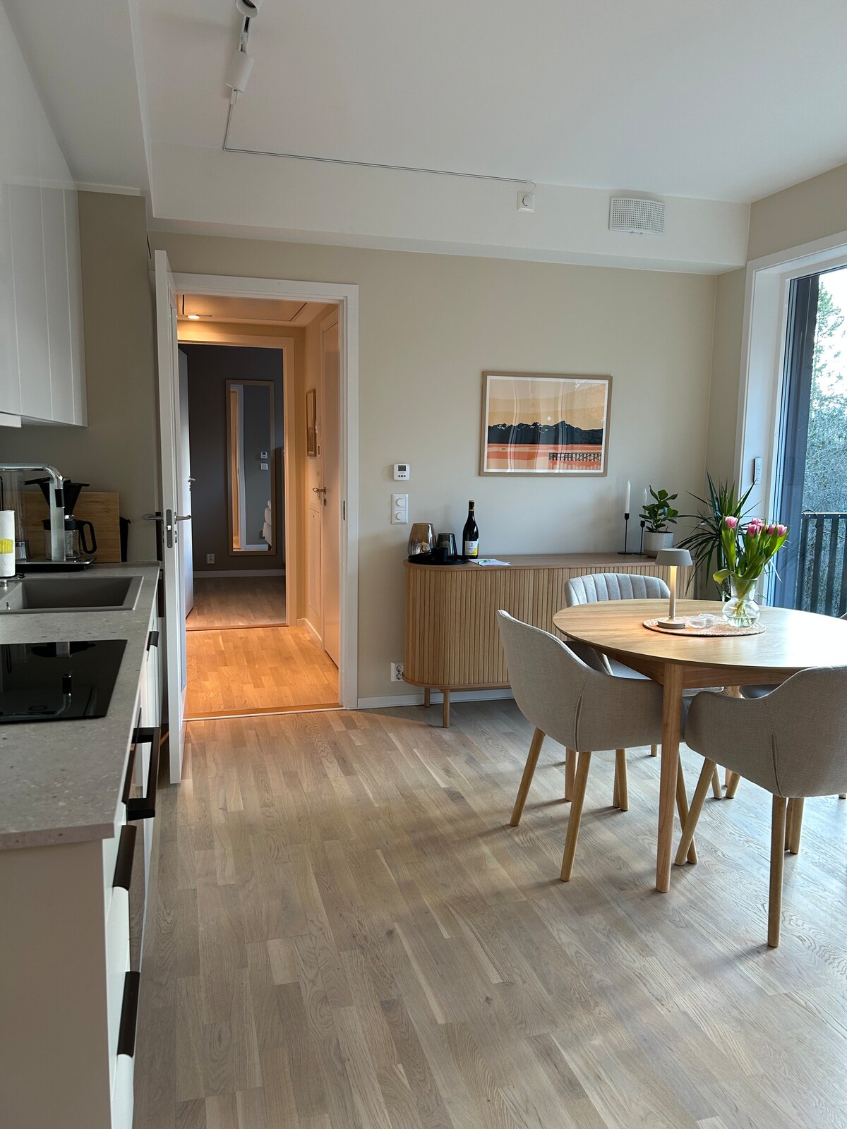 Modern apartment with two bedrooms and balcony with view to green areas and sun until late ☀️ Wi-Fi, TV and dishwasher available. Free parking along the street. Central with 2 min walk to metro that takes 12 minutes to central Oslo. Shopping mall just 3 min walk from the apartment with grocery stores, other shops and restaurants & café. Several nice and green walks in the area, with Østensjø only a short walk away 🌳