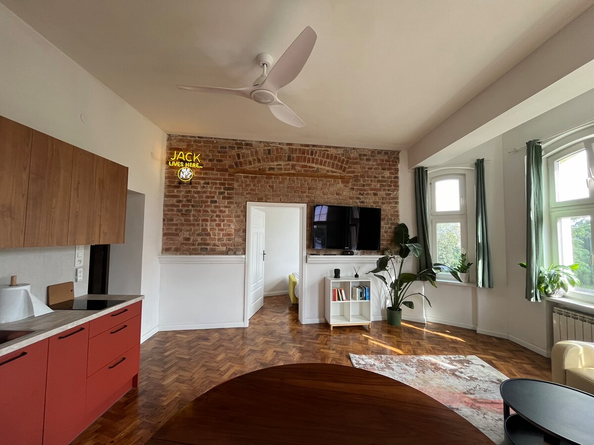 Un appartement atmosphérique situé dans un magnifique immeuble Art nouveau de 1909 dans le centre d'Ostrów Wielkopolski. L'appartement se compose de deux chambres, d'un séjour avec une cuisine, d'une salle de bains avec une armoire et d'une machine à laver. L'appartement est fraîchement rénové, l'espace offre la possibilité de se détendre confortablement pour 6 personnes.