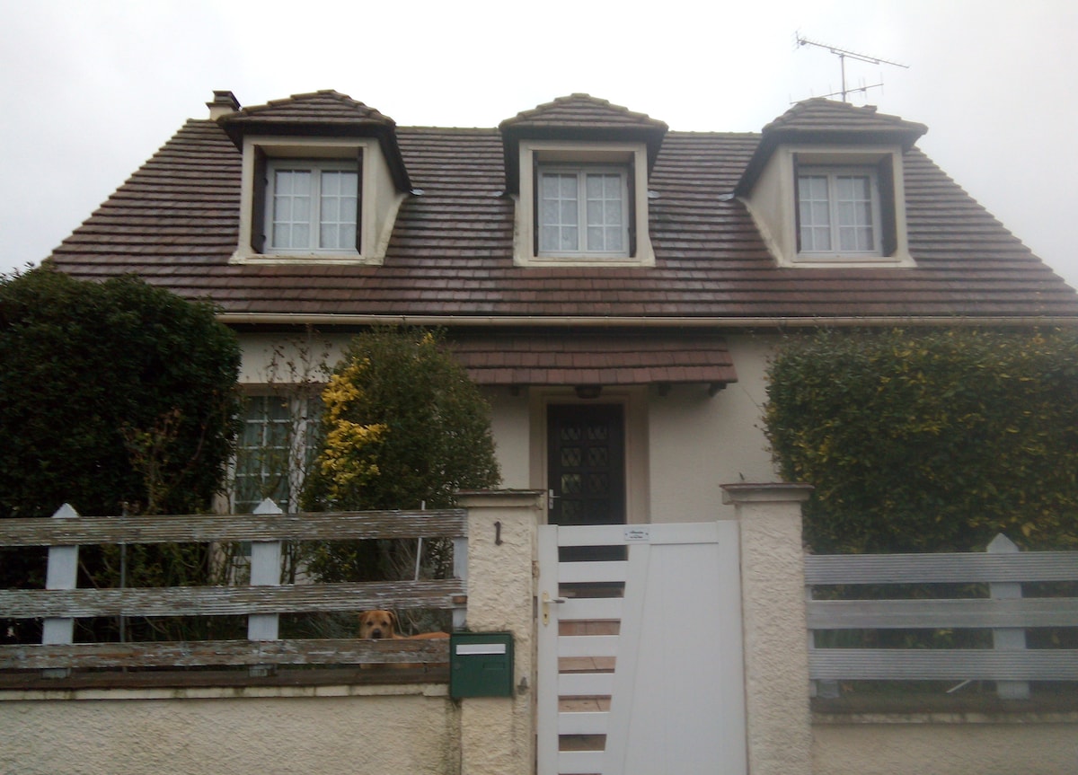 Au bout d'une impasse, appartement de 32m2 situé à l'étage d'une maison avec jardinet réservé aux voyageurs, séparé du jardin principal par clôture. - Petit-déjeuner compris - Une épicerie avec des prix compétitifs et des produits de la région est située à 5mn à pied en haut du village (ancien bureau de poste réaménagé) - Tous autres commerces: 10 mn en voiture. - Aéroport Roissy CdG 14 mn (village en dehors des couloirs aériens). - Sherwood Parc 16mn. - Parc Expos de Villepinte 17mn - Parc Astérix 19mn. - Parc Expos du Bourget 20mn. - Château de Chantilly 24mn. - La Mer de sable 32 mn. - Disneyland Paris 42mn. - Paris porte de la chapelle ~40mn/26km