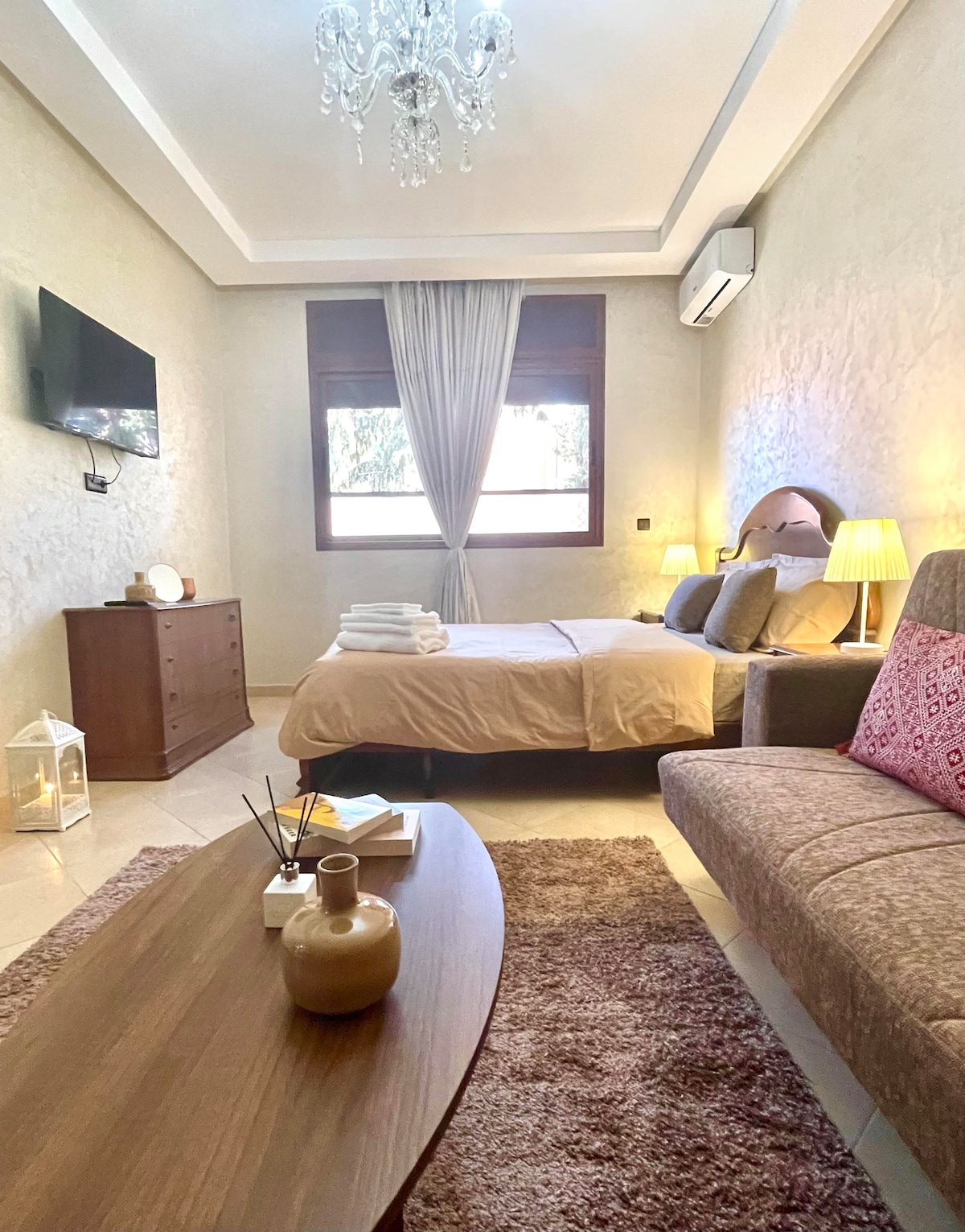 Bienvenue dans notre havre de paix au cœur de Marrakech ! Situé dans le quartier très prisé de Guéliz, à seulement 10 minutes à pied du centre animé de Carré Eden, notre appartement offre un séjour alliant confort et sérénité. Niché dans le quartier calme et paisible d’El Ghoul, vous pourrez profiter de l’effervescence de la ville tout en vous reposant dans un environnement tranquille. Idéal pour explorer Marrakech, notre espace est conçu pour vous offrir une expérience mémorable.