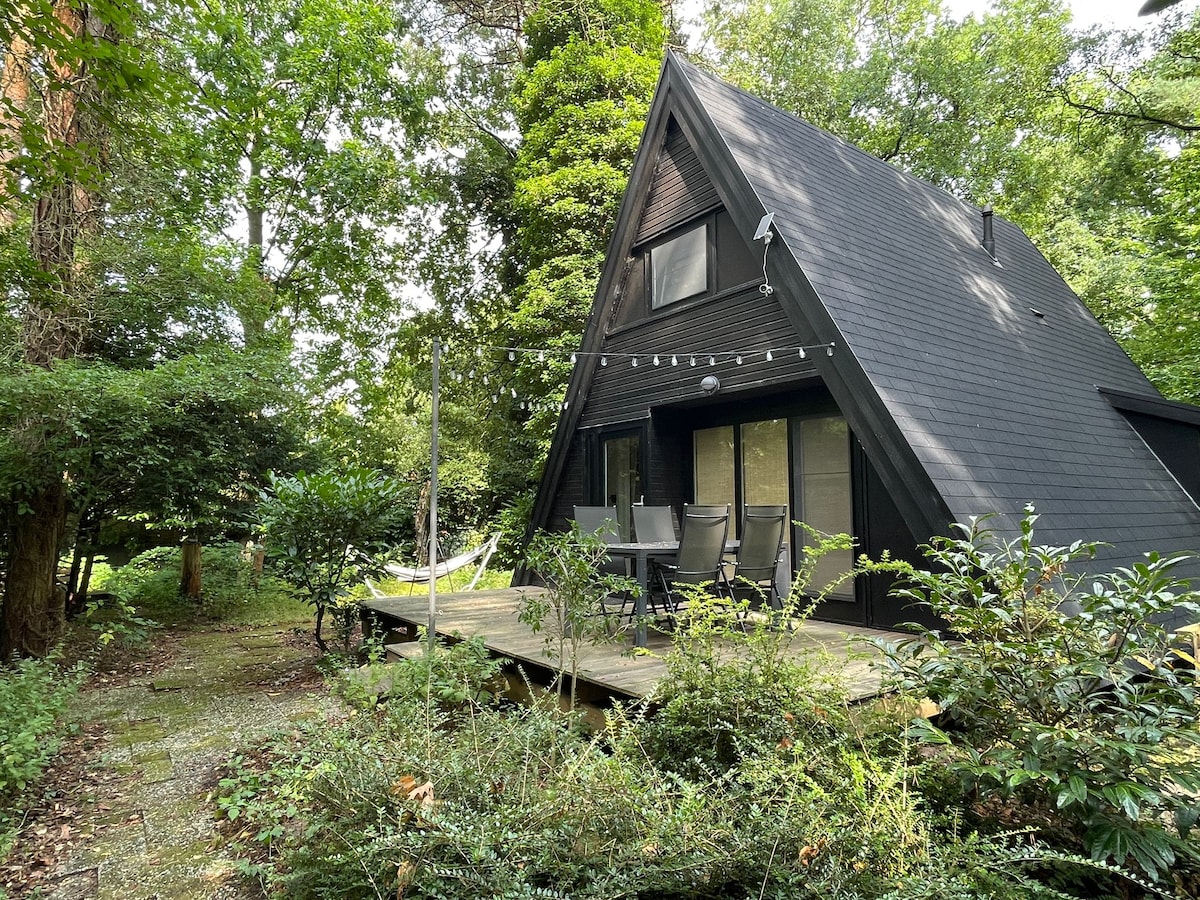 Loin des parcs de vacances traditionnels. Pas de foule de gens. Pas de circulation, pas de bruit. Beaucoup de belle nature, des étangs de pêche, des sentiers pédestres et cyclables sans fin et de bons restaurants à proximité. Le Punthuisje est une cabine Aframe unique entièrement rénovée avec des matériaux naturels et beaucoup de luxe, y compris un jardin de bien-être privé. Pour un week-end aventureux ou une journée et une nuit en pleine nature au Park Sonnevijver à Rekem, près de Maastricht.