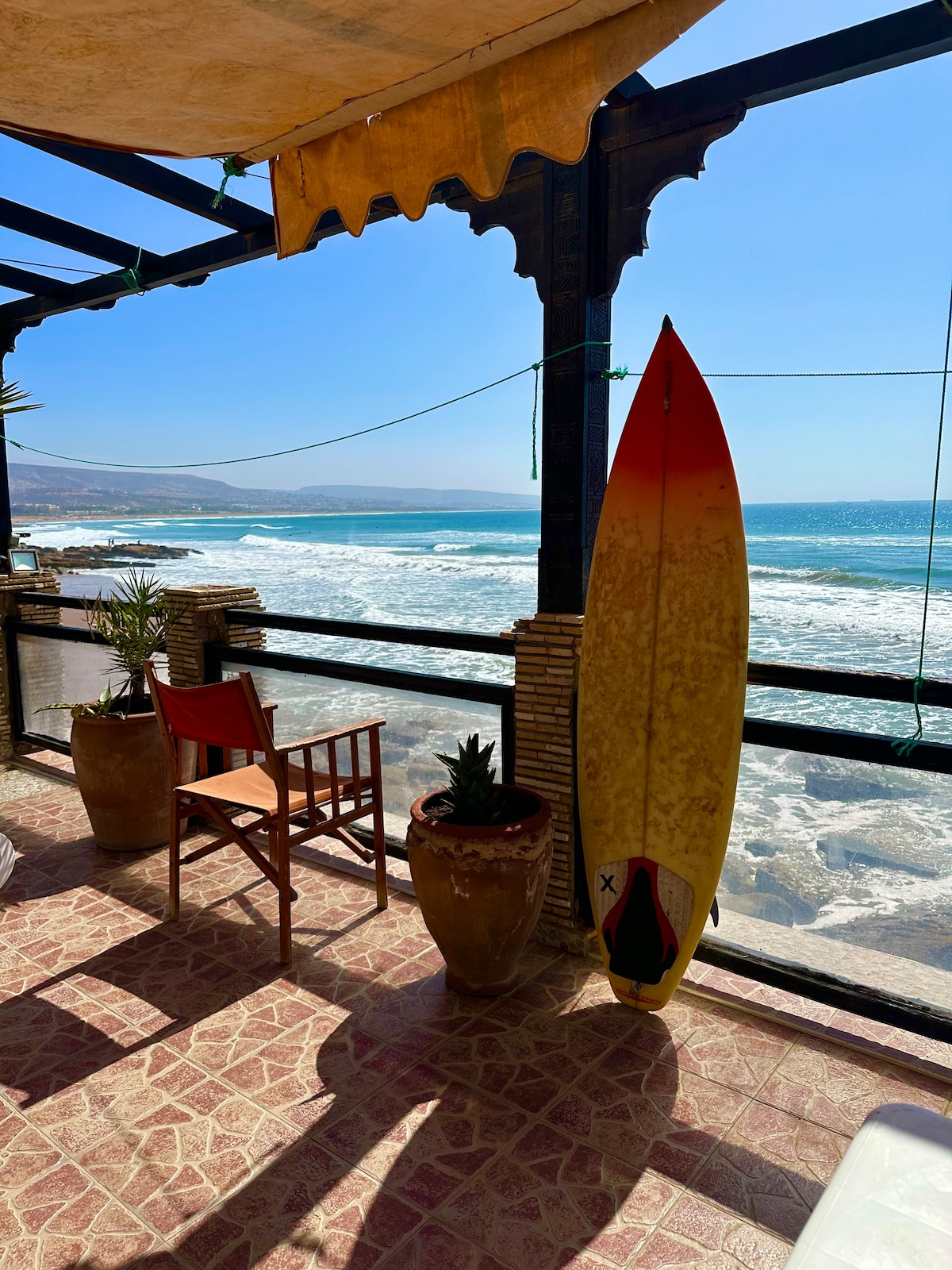 charming apartment offers the perfect blend of tranquility and unbeatable ocean views and a relaxed atmosphere. Whether you’re here to surf, or unwind, you’ll find the perfect spot. Enjoy stunning sunsets, friendly vibes, and easy access to the beach . We offer managed trips for surfing, surfskating, quad biking, horseback riding, and sand dune adventures with sandsurfing, camel rides, and dinners under the stars. Perfect for solo travelers or groups looking to experience Morocco’s coast!