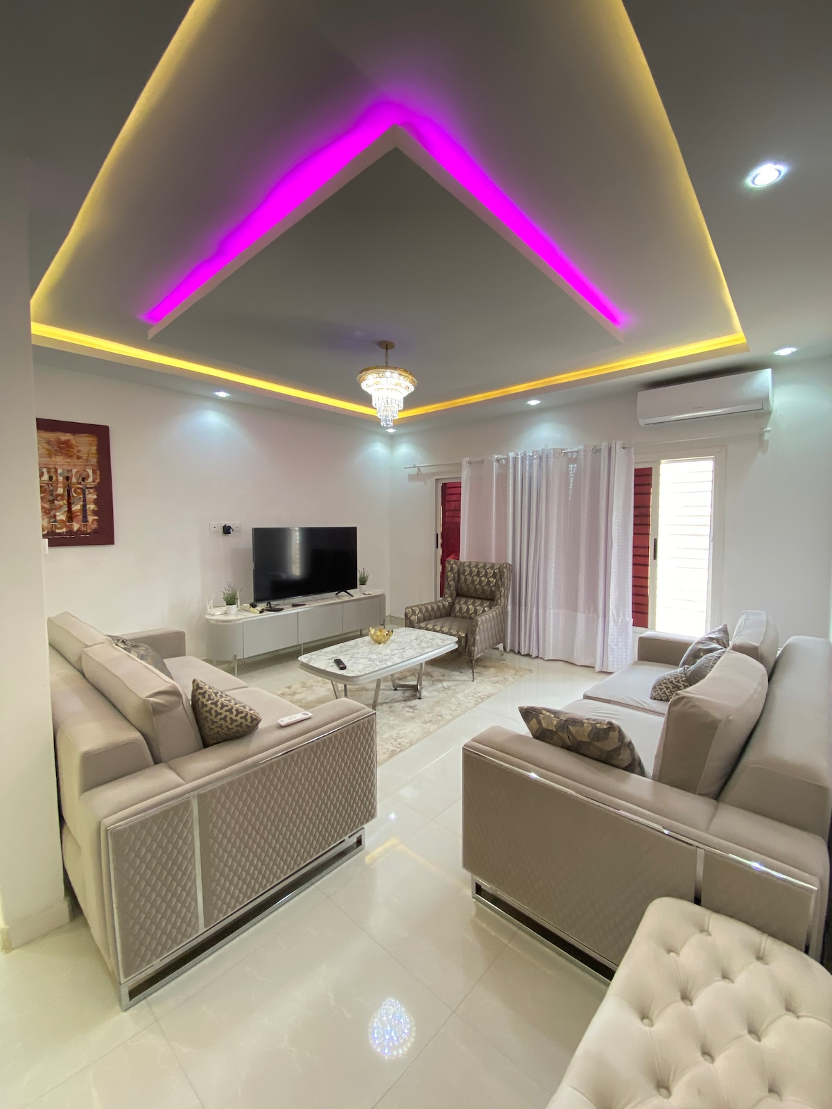 Appartement paisible et somptueux situé dans une villa à l’intérieur d’une cité résidentielle avec un espace vert privé et un système de gardiennage collectif pour garantir un cadre de vie à tous les résidents. Il est parfait et élégant pour les groupes. L’accès de l’appartement est facile à partir de la VDN. Il est proche de toutes les commodités dans la partie résidentielle, gérée par un Syndic de copropriété et non loin des restaurants et des supermarchés dans la partie commerciale.