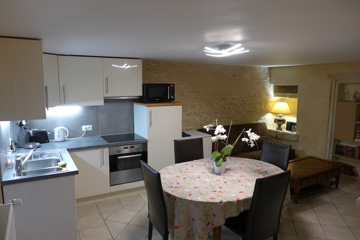 L'appartement est situé au calme, à 5 Km du bord de mer, dans un corps de ferme du 19ième. Une terrasse plein sud équipée (chaises longues barbecue) en pied du logement donne sur une cours fermée dont seul le propriétaire à accès. Jacuzzi professionnel 5 places toute l'année, petite piscine durant les beaux jours. Vous allez être séduit par la pierre apparente et les escaliers en pierre Vous passerez des bons moments même en hiver grâce à la cheminée (bois fourni) et le jacuzzi à 36 degrés.