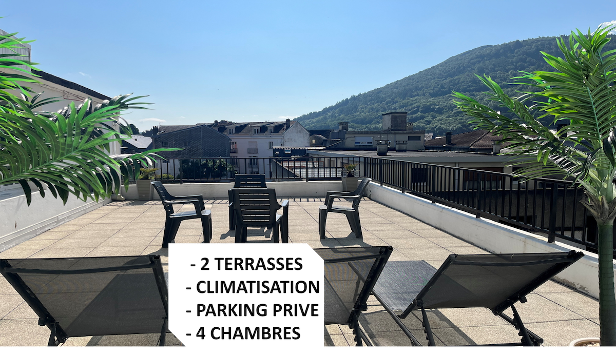 Bienvenue dans l'univers de Bed & Views ! La suite Panoramique est un appartement unique à Pau ! Niché au 7 ème et dernière étage de la résidence Trespoey, vous disposerez d'un appartement avec home cinéma , moderne et fonctionnel. Par beau temps, vous ne pourrez qu'apprécier le toit terrasse de 40 m2. Avec des vues exceptionnelles sur toute la chaîne des Pyrénées, vous vous sentirez très privilégié(e)s. Un véritable tableau vivant vous attend !
