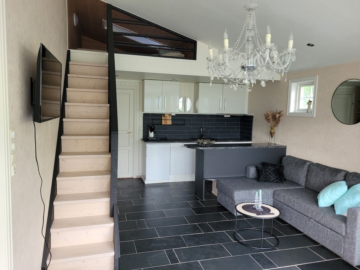 Cottage of about 60 square meters with 2 bedrooms. Own kitchen with crockery. The cottage is in a peaceful area with 3 other cabins. The chalet is in a private road and the area is quiet and peaceful. There is barbecue at the cabin for fine evenings with sunset in the fjord. There is a fireplace in the living room and it comes with firewood that can be used if it gets cold. There is also electric heating in every room. Bed linen and cleaning are included in the price.