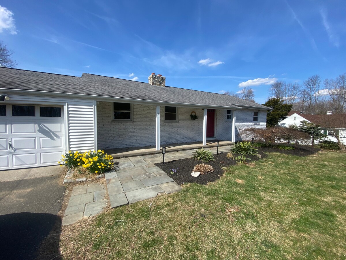 Vue sur la montagne de l'Est dans toute sa splendeur. Ce ranch rénové et propre de 3 chambres est situé au centre des autoroutes et des centres commerciaux. Marchez jusqu'à la terrasse arrière et découvrez certaines des plus belles vues de Waterbury, y compris les feux d'artifice depuis la terrasse arrière (juillet). Le Wi-Fi/câble, la climatisation centrale/air chaud, le lave-linge/sèche-linge et le mobilier de patio/grill (saisonnier) sont inclus dans le séjour. De nombreux divertissements (jeux de société, jeu de poches, baby-foot, air hockey) sont fournis. Cette maison est vraiment relaxante et vous vous sentirez comme chez vous.
