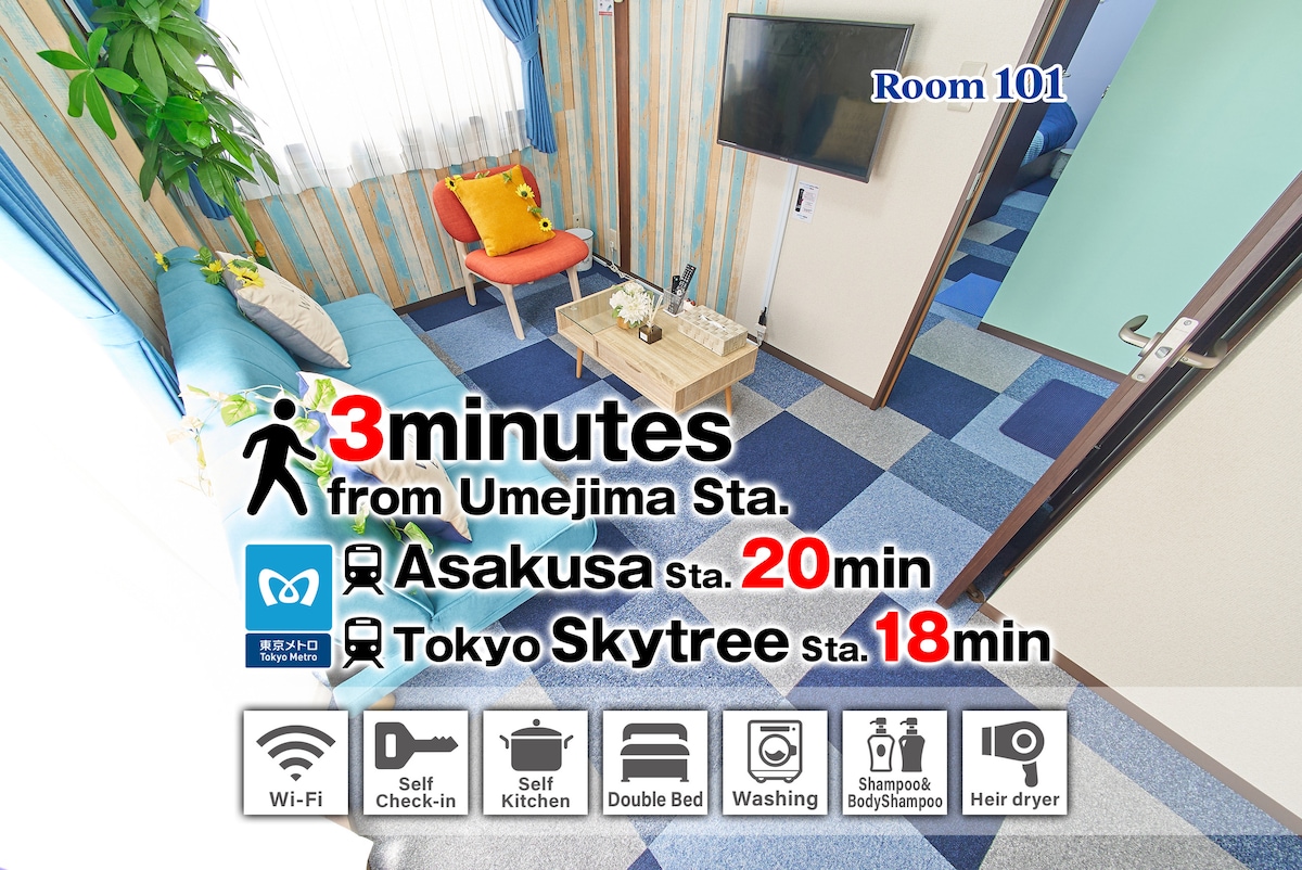 Près du temple Sensoji/Sky Tree/Parc Ueno #Room2999