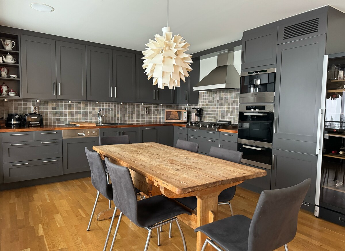 Our new apartment (4 bedrooms/11 beds, 2 bathrooms) is in Hafjell Front with ski in/ski out (south side of the ski resort). It also has immediate proximity to 600 km of hiking and cross-country trails. Underfloor heating throughout the apartment + fireplace, and cot and highchairs are included. Well equipped kitchen. Electricity, internet, parking garage and mandatory cleaning are included. Electric car charger available (pay for use). Pets and smoking are unfortunately not allowed.