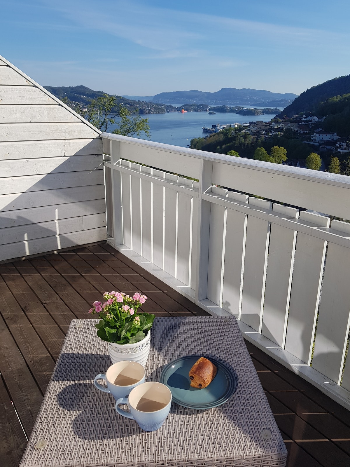 Élégant, grand et lumineux appartement de 3 pièces (environ 83 m2) avec une belle vue sur le lac et une terrasse ensoleillée ! Garez la voiture en toute sécurité dans l'abri pour voiture sous l'appartement et n'hésitez pas à utiliser le chargeur si vous avez une voiture électrique. À seulement 15 minutes du centre-ville de Bergen en voiture. Vous pouvez y séjourner sans être dérangé et profiter de journées tranquilles.