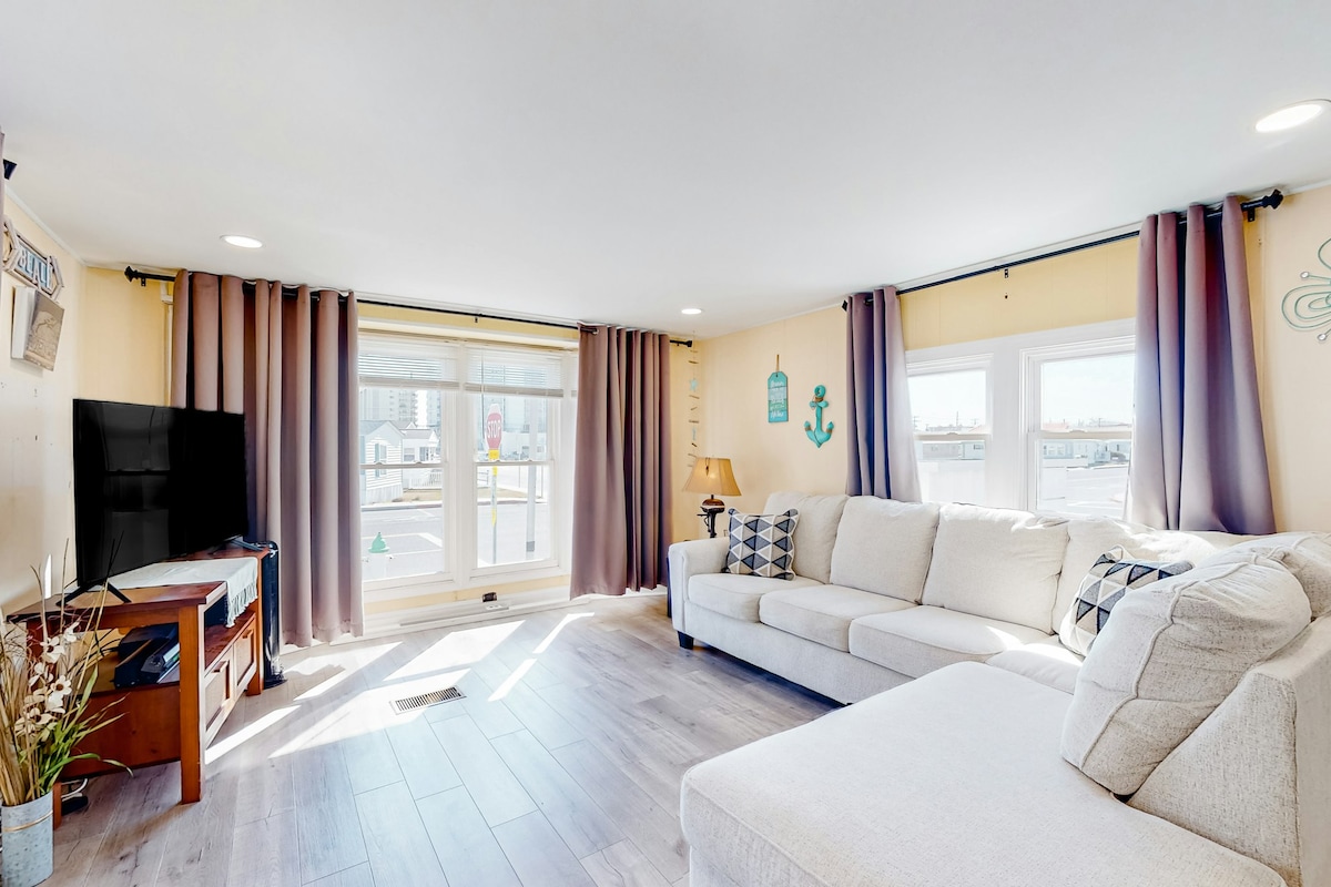 Toute nouvelle belle rénovation achevée l'année dernière !! Condo d'1 chambre sur la 40e rue, en face du centre de congrès et à un demi-pâté de maisons de l'océan et d'une grande partie de plage peu fréquentée. Arrivée autonome facile avec clavier - pas de clés ! La décoration est à jour et dispose de tout nouveaux comptoirs en granit, d'une belle salle de bain carrelée, d'appareils électroménagers et de meubles neufs, d'un lit et d'un canapé confortables, du Wi-Fi et de la climatisation centrale. Votre maison loin de chez vous !