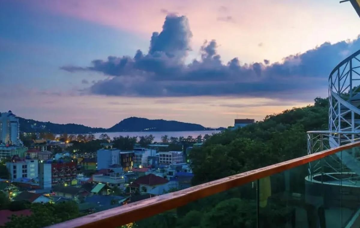 Vue imprenable sur l'océan de Patong depuis un appartement en résidence au sommet d'une colline, Phuket