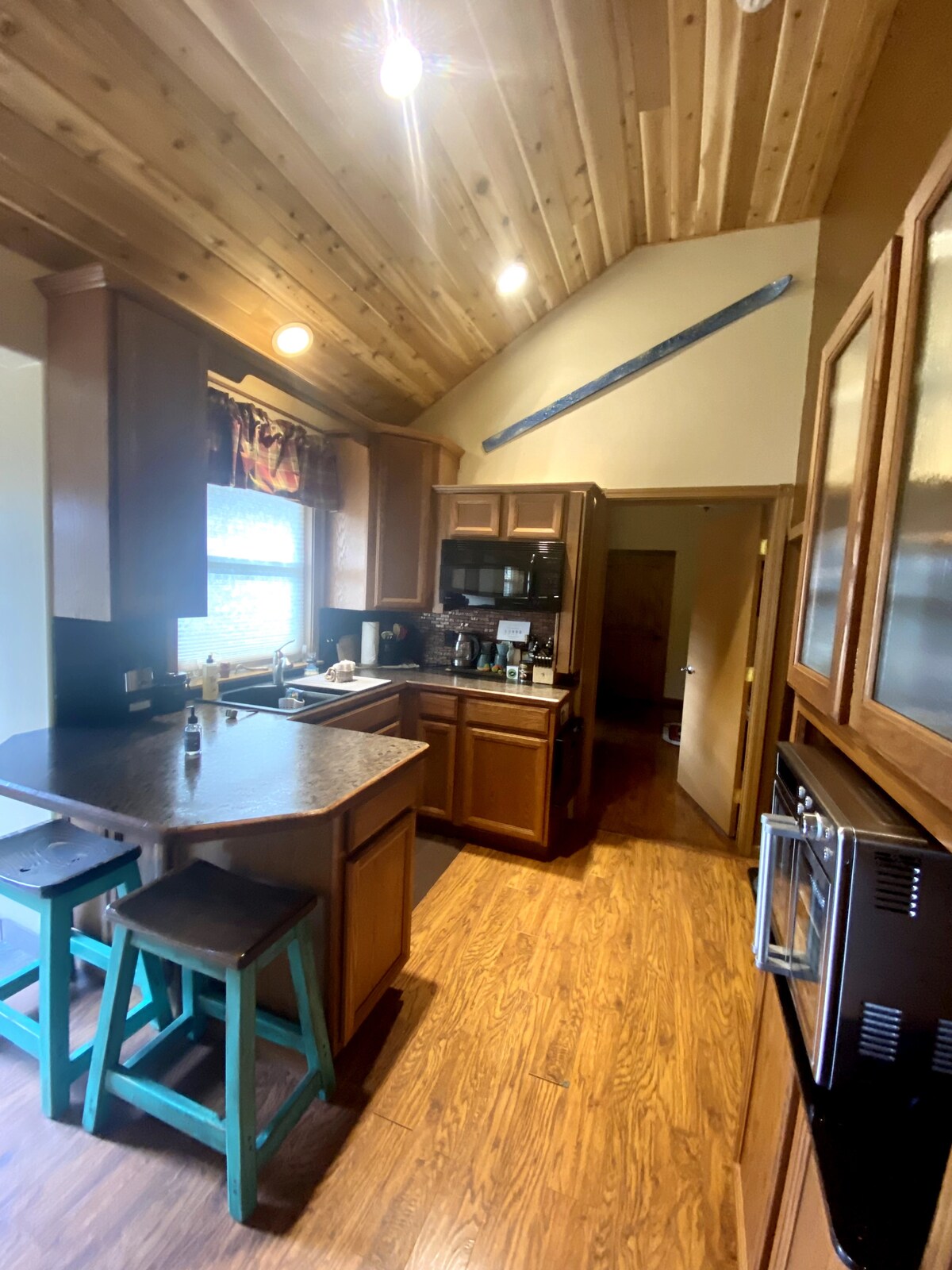 NOUVEAU LOGEMENT ! - Emplacement, emplacement, emplacement ! Le gîte de vacances se trouve dans une boucle communautaire privée fermée d'Elkhorn, sans circulation. Il est parfaitement adapté aux besoins de jusqu'à 7 personnes, avec 2 couples adultes dans des chambres queen size et jusqu'à un mélange de 3 enfants/adultes dans les 3 lits superposés dans la zone ouverte du loft. Jeux, foyer, élan de Roosevelt, vues panoramiques, etc... le cadre idéal pour votre escapade en montagne. Situé dans le centre-ville de Packwood, tout ce dont vous avez besoin est accessible à pied.