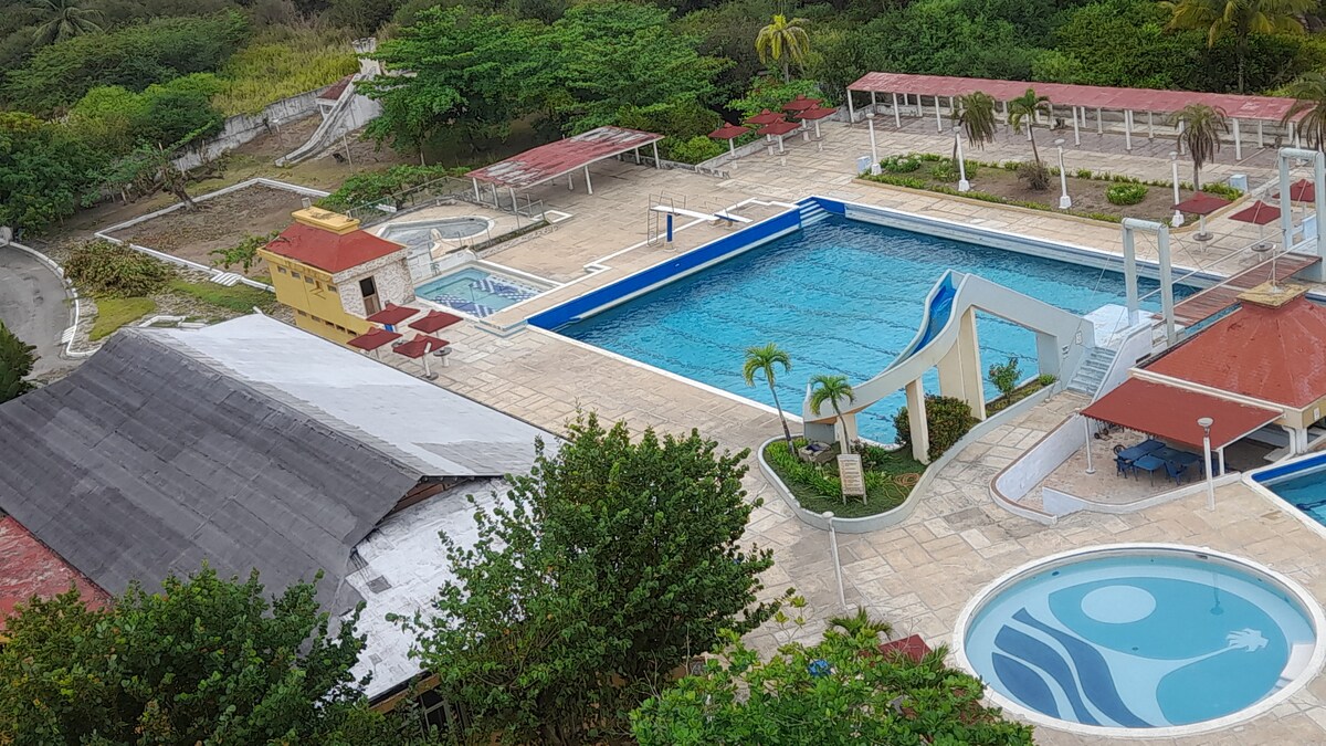 Profitez de vacances dans le meilleur appartement des canaux Rio Chico. Spacieux et avec une très très très très belle vue. •Appartement : -3 chambres. -2 salles de bains. -Salle, cuisine - Terrasse. -A/C - Eau chaude -1 Place de parking. L'appartement a TOUT pour votre confort, il suffit d'apporter des vêtements pour profiter et se reposer. •Espaces communs : Grande piscine et pour enfants. - Jacuzzi hydromassage. - Espaces verts. -Golfito, terrain de football. -Salon de jeux (Pool, Ping pong). - Churuatas et barbecue.