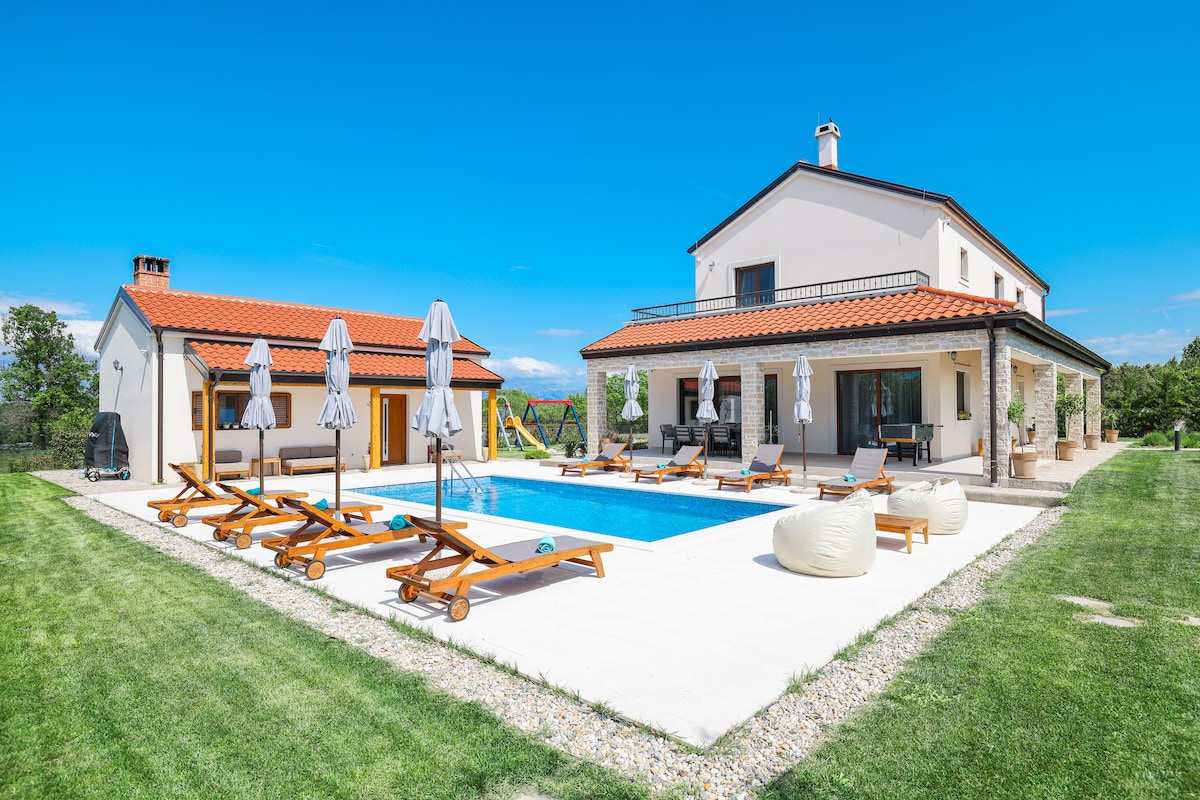 Bienvenue à la villa Velebita ! Une propriété unique vous offre tout ce dont vous pourriez avoir besoin pour passer des vacances inoubliables en Croatie ! La propriété est située dans la banlieue de la ville de Zadar, où vous pourrez profiter d'un moment de paix avec votre famille ou vos amis, à l'écart du bruit de la ville, de la baignade, des bains de soleil et de siroter des boissons fraîches près de la piscine, préparer des repas dans la cuisine d'été et se rassembler à une énorme table de chêne, et admirer de magnifiques montagnes de Velebit.