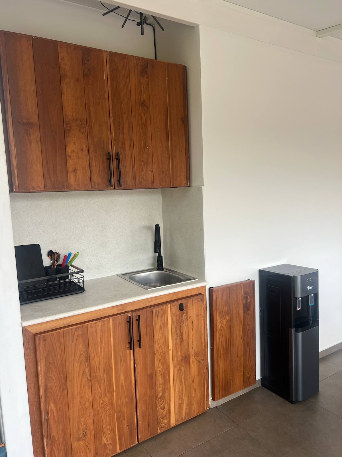 Appartement au rez-de-chaussée avec lit King Size, bureau, télévision, réfrigérateur, baignoire et douche. Grande terrasse privée avec vue sur la montagne le long d'un petit ruisseau. Espace fitness, toit, jardin et petite cuisine partagés sur le même complexe. Utilisation gratuite Le complexe est directement à côté du parc du marché du samedi avec un immense terrain de jeu. Entouré également de nombreux cafés, restaurants, centres de yoga et collègues de travail. Même le marché nocturne de la célèbre rue piétonne est à seulement 10 minutes à pied.