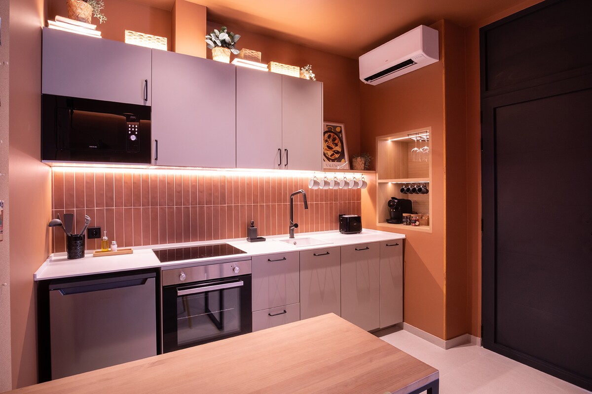 Le design nordique élégant rencontre la vie espagnole chaleureuse dans cette maison où des couleurs vives mettent en valeur le décor contemporain. Détendez-vous dans les espaces ouverts calmes ou sur le balcon ensoleillé donnant sur les rues. Vous pourrez profiter d'un moment rafraîchissant dans la salle de bain spacieuse ou vous préparer un délicieux repas avec la cuisine entièrement équipée et meublée. Et lorsque vous êtes fatigué de votre journée d'exploration en ville, rien de mieux que le calme de la chambre et le lit confortable.