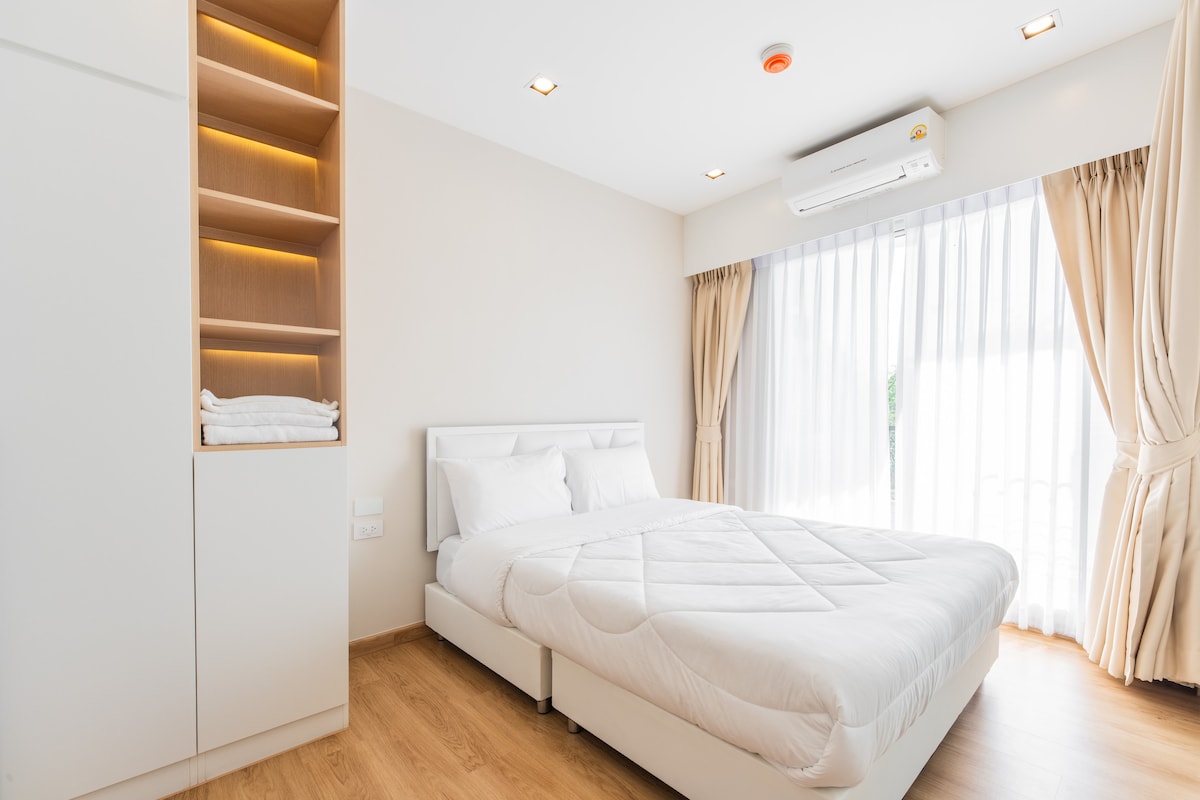 Un espace calme, propre et confortable, parfait pour se détendre, travailler et pour des séjours de longue durée. Idéal pour les voyages d'affaires et les séminaires. Idéalement situé à proximité de l'IMPACT Arena, du Cosmo Bazaar, de Maxvalue (24h/24) et de 711 La chambre dispose d'une literie de qualité hôtelière, d'une connexion Wi-Fi haut débit, d'une cuisine entièrement équipée avec des ustensiles de cuisine complets et d'appareils électroménagers essentiels pour la vie quotidienne. Conçu pour que vous vous sentiez chez vous, que vous séjourniez quelques jours ou plusieurs mois. Parfait pour des séjours courts et prolongés.