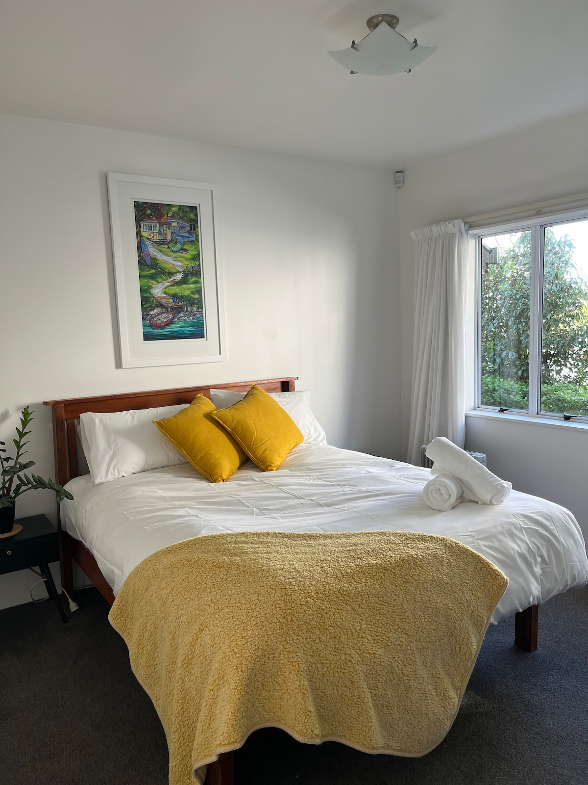 Cet appartement situé au centre, construit en 2023, se trouve à quelques pas de tout ce que Matakana a à offrir. Marchez jusqu'aux marchés, au cinéma, aux boutiques et aux restaurants ou passez directement de l'autre côté de la route jusqu'à la brasserie 8 Wired. Tout est à portée de main. Meublé dans un style côtier/Scandi avec des appareils modernes, une cuisine équipée, un lit king size, un chauffage au sol dans la salle de bain, une pompe à chaleur, une télévision et le wifi.