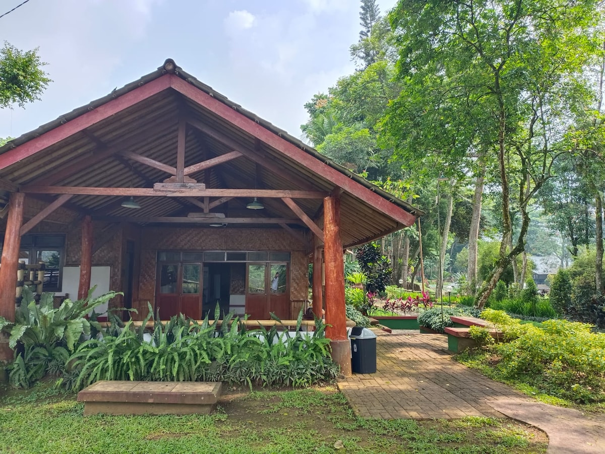 C'est notre villa de rêve conçue pour les grands rassemblements de famille, spacieuse, confortable et située dans un endroit calme avec une ambiance de village et une vue magnifique sur les montagnes du mont Salak et le mont Pangrango. La zone de Tanakita couvre 1 200 m² avec un grand jardin et 2 bâtiments : bâtiment principal de 3 étages, cabane en bois de deux étages. Amenez votre famille et vos amis dans ce fabuleux logement qui offre beaucoup d'espace, de lieux pour prendre des photos et d'installations pour le travail, les loisirs et le sport.