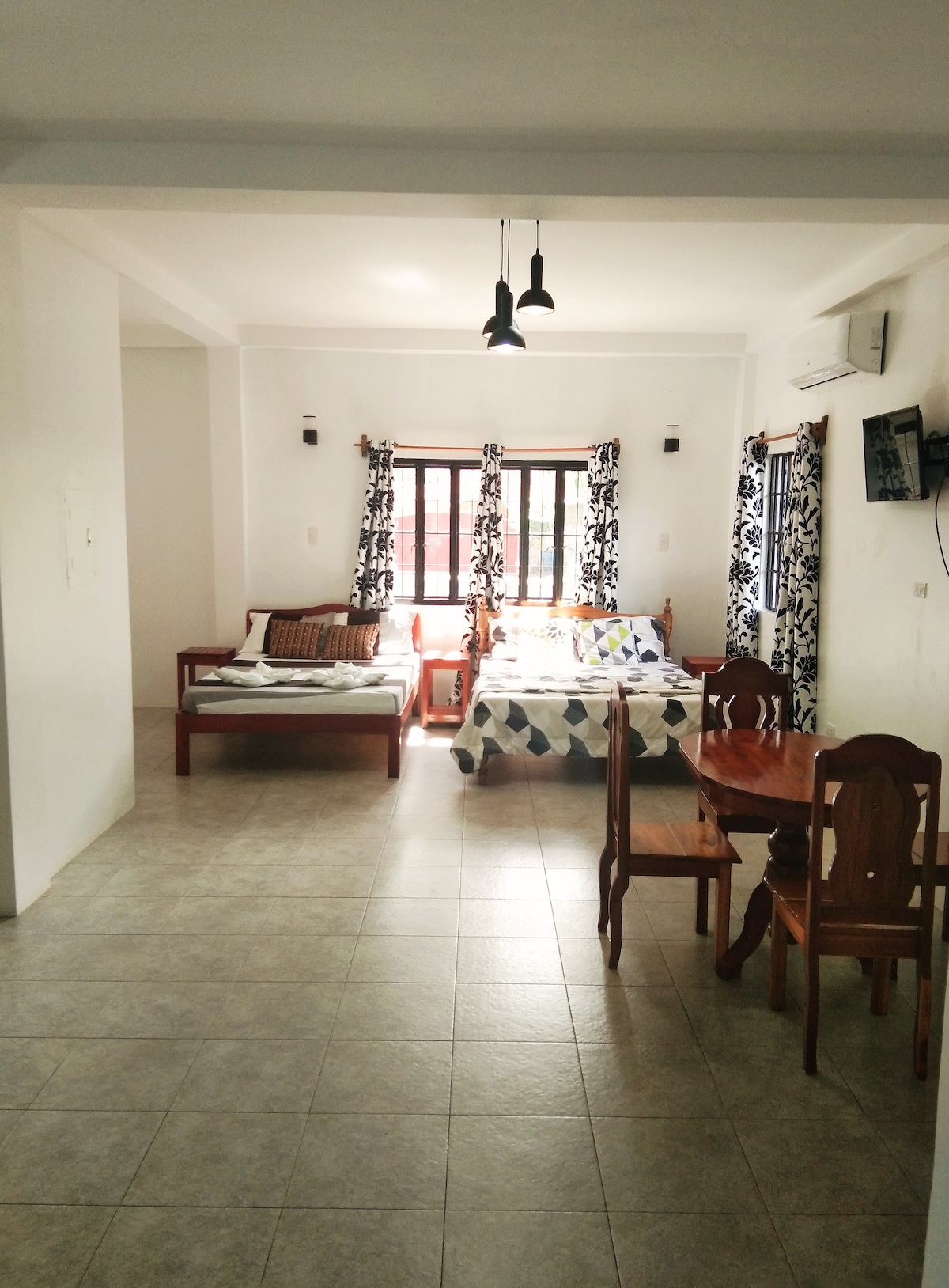 Remarque importante sur l'emplacement : L'emplacement de l'annonce sur la carte Airbnb est temporairement inexact. Veuillez rechercher « Island Wanderers Inn, Barangay 6, Coron, Palawan » sur Google Maps. C'est le bon emplacement du logement. • À 25 minutes de route de l'aéroport de Busuanga • À 10 minutes en voiture de la ville (tricycle sur appel disponible) Notre chambre comprend : • 1 lit king size • 2 canapés-lits doubles • Table à manger • Ustensiles de cuisine de base • Douche chaude et froide • Accès GRATUIT à la piscine Wi-Fi.