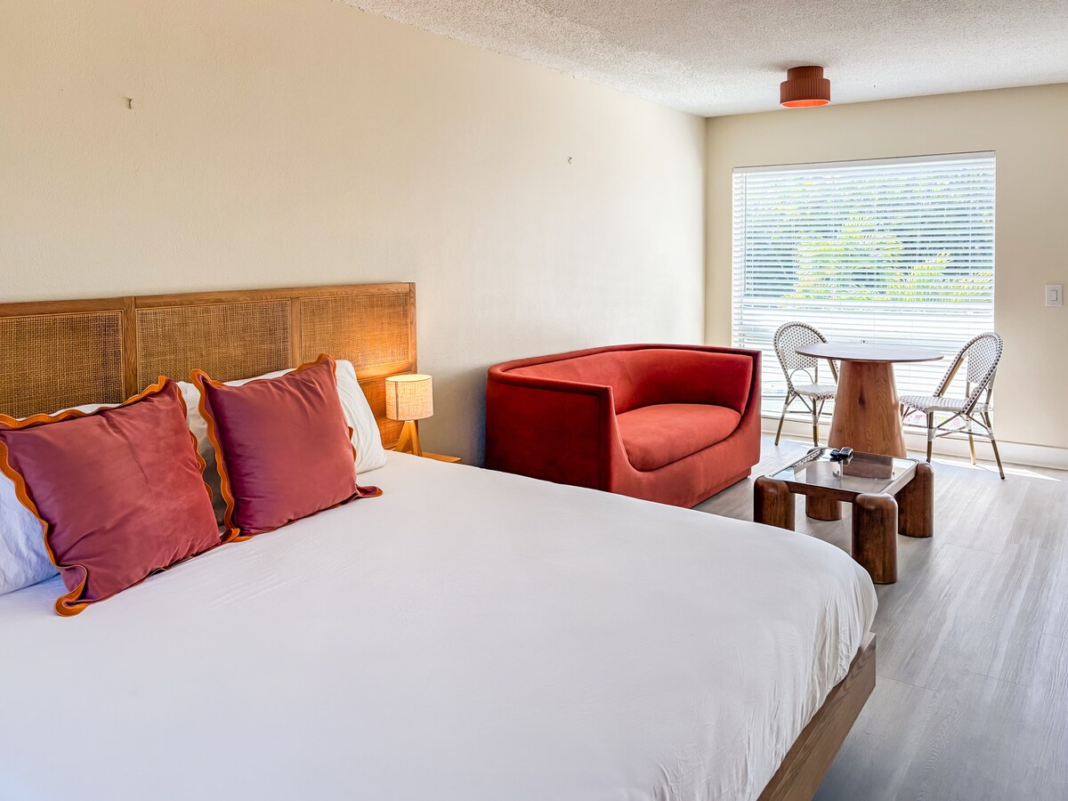 Détendez-vous et rechargez vos batteries dans notre charmant studio au Jaxon Boutique Hotel. Parfait pour les voyageurs en solo ou les couples, ce cocon dispose d'un lit double, d'une kitchenette bien équipée pour les repas légers et de tous les éléments essentiels pour un séjour élégant et confortable. Situé au cœur de West Palm Beach, vous serez à quelques minutes de Palm Beach Island, du centre des congrès et des meilleurs restaurants et attractions de la ville. Que vous soyez en voyage d'affaires ou en vacances, votre séjour mémorable commence ici !