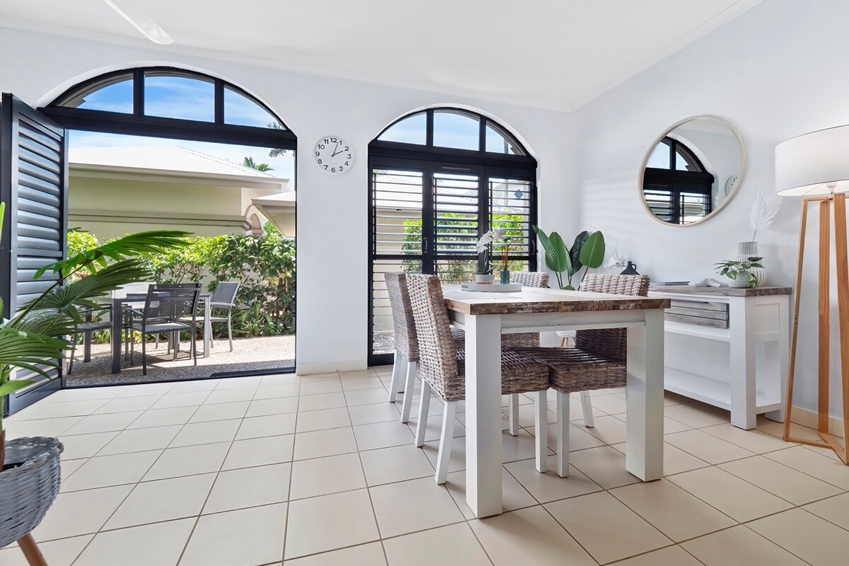 Bel appartement tropical juste en face de Trinity Beach. Vous avez une vue sur la mer et pouvez entendre les vagues s'écraser dans votre chambre. Cet appartement de vacances se trouve dans le complexe hôtelier Coral Sands. C'est un appartement moderne et entièrement indépendant, avec une intimité et une vue incroyable. Emplacement privilégié à distance de marche des restaurants et cafés. Un endroit idéal pour se détendre. Articles de cuisine essentiels, large gamme de thés et cafetière à piston. Netflix, WiFi illimité.