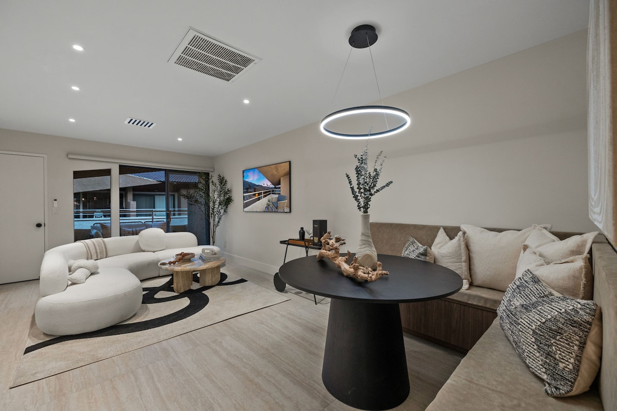 Prix hivernaux exclusifs avec des économies saisonnières confortables ! Cet appartement inspiré de Frida Kahlo allie un design dynamique à une touche du milieu du siècle, vous offrant un pied-à-terre élégant à quelques pas du centre-ville. Parfait pour une escapade hivernale. Profitez des journées ensoleillées au bord de la piscine chauffée et des soirées fraîches du désert sur votre balcon privé. - Balcon avec vue sur le lever et le coucher du soleil - Piscine, jacuzzis et courts de tennis - 10 minutes à pied des restaurants et de la vie nocturne Parfait pour les escapades hivernales. Profitez du soleil, des journées à la piscine et des randonnées en montagne à quelques minutes !