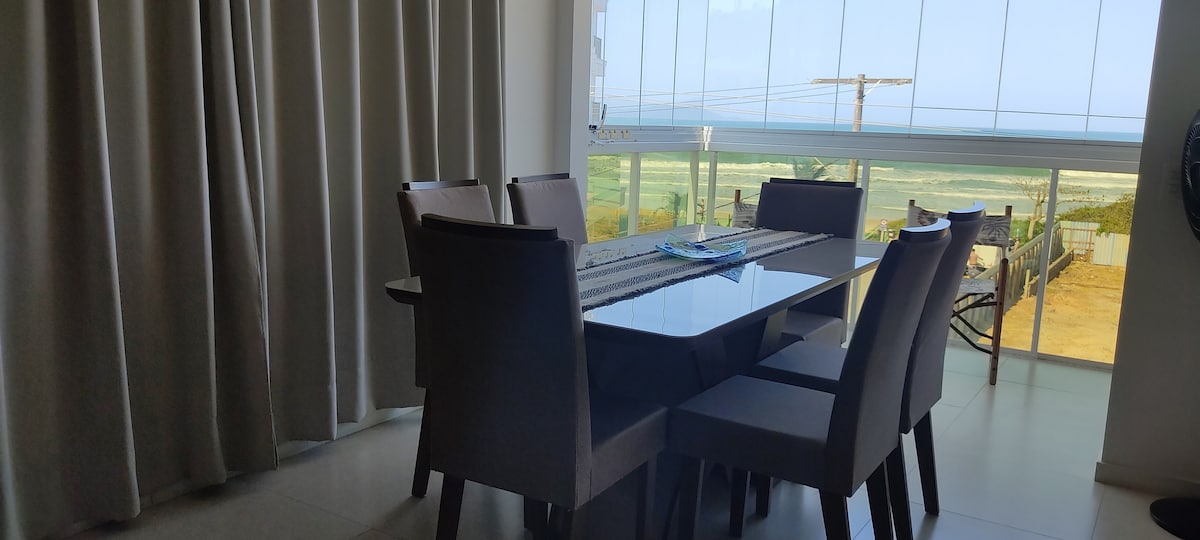 Mon appartement a une belle vue sur la mer, il est spacieux et confortable, balcon avec une belle vue, wifi 120 MB qui vous permet de travailler à distance, barbecue privé, vitré, salon et salle à manger intégrés avec cuisine, éclairage naturel dans toutes les pièces, super ventilé, climatisation dans les chambres et ventilateur de plafond dans le salon. Tout est bien entretenu. Immeuble de seulement 10 unités. J'ai une boîte de loisirs au rez-de-chaussée avec du matériel de plage qui peut contenir un vélo. Et le meilleur : il est à 25 m de la plage ! ! !