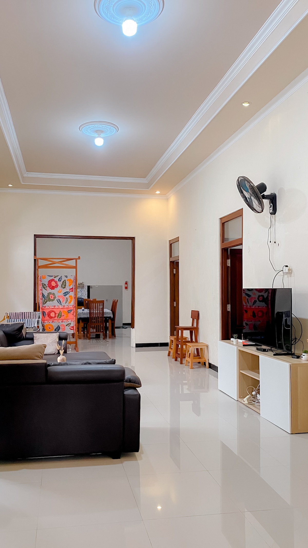 Griya Mundu 2 Queen Beds 1 King Bed Garage for 2 cars The house in the middle of Solo Facilities: 1. TV 50 inch (Include Netflix) 2. AC in each room 3. Water heater 4. Wifii 5. Hair dryer 6. Standard Appliance kitchen 7. Washing Machine 8. Iron 9. Microwave 10. Refrigerator 11. Dispenser Other things to note 1. 18 Minutes to the Airport 2. 10 Minutes to Balapan Station 3. 5 Minutes to Sriwedari or Manahan Stadium 4. 10 Minutes to Sheikh Zayed Mosque